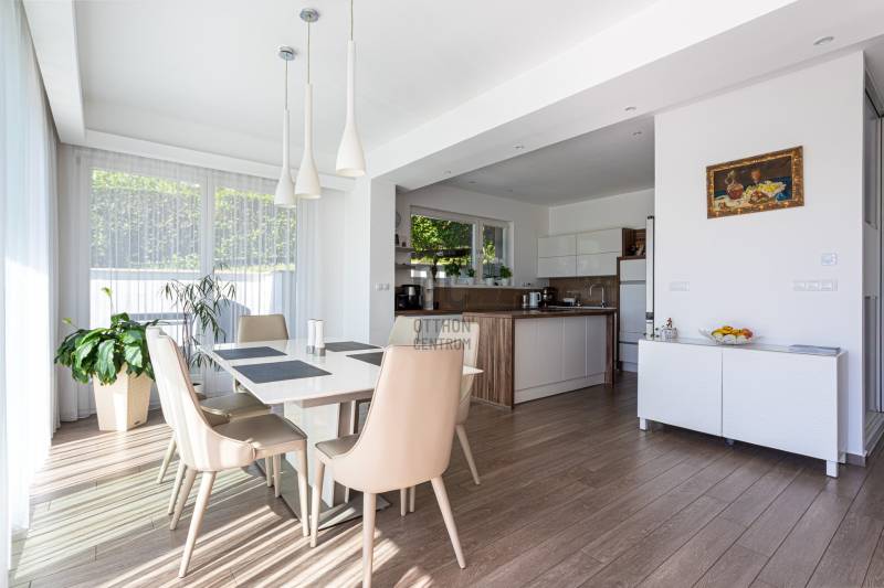 Eladásra kínálok a III. kerület legkeresettebb részén, Aranyhegyen, egy 2016-ban épült, 303 m²-es, két szintes, újszerű állapotú luxus családi házat, mely egy tágas, 1008 m²-es, gondosan kialakított telken helyezkedik el.Az otthon központi tere a világos, impozáns amerikai konyhás nappali, amely tökéletes színtere a családi és baráti összejöveteleknek. A házban öt hálószoba található, mindegyikhez saját gardrób kapcsolódik, így a funkcionalitás és a kényelem egyszerre érvényesül.Az ingatlant ízléses belsőépítészeti megoldások, prémium anyaghasználat és letisztult elegancia jellemzi. A ház minden részlete a minőség és a kifinomult stílus jegyében készült, a tulajdonos saját részére építette, kompromisszumok nélkül.Főbb jellemzők:•15 cm grafitos hőszigetelés – garantált energiahatékonyság•Mitsubishi Zubadan hőszivattyú plafon- és padlófűtés/hűtés rendszerrel•3 rétegű fa nyílászárók, elektromos redőnyökkel és szúnyoghálókkal•Kizárólag prémium minőségű burkolatok és szaniterekRezsi költségek rendkívül kedvezőek:•Áram kb. 38.000 Ft/hó•Víz + csatorna kb. 26.000 Ft / 2 hónapA kétszintes garázsban és a kertben kialakított felszíni beállókon összesen akár 4 autó kényelmesen elfér.A környék presztízsértékű: kizárólag új építésű ingatlanok, rendezett utcák és csendes környezet. Az infrastruktúra kiemelkedő – 3 perc sétára található a buszmegálló, amely közvetlenül a Csillaghegyi HÉV-hez visz, autóval pedig percek alatt elérhető a Bécsi út vagy a Szentendrei út. A közelben a Mészkő Park és a Csillaghegyi Strandfürdő is élményt kínál a kikapcsolódáshoz.Ez az ingatlan több, mint egy ház – ez egy életérzés, ahol a luxus és a harmónia együtt valósul meg. Megtekintés kapcsán várom megtisztelő hívását – rugalmasan, akár hétvégén is!