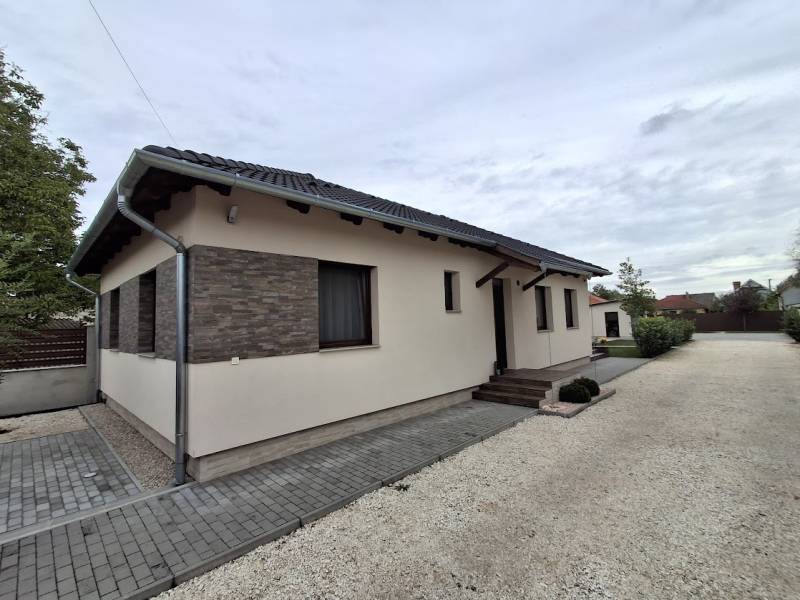 Eladó modern családi ház Cegléd kertvárosában – garázzsal és terasszalElhelyezkedés: Nyugodt, kertvárosi környezet Cegléden, kiváló választás családok számáraIngatlan főbb jellemzői:- Építés éve: 2021- Szerkezet: Porotherm 30-as tégla, 15 cm hungarocell szigeteléssel- Födém: fafödém- Hasznos alapterület: 80 nm- Helyiségek elosztása: Tágas nappali – konyha – étkező egy légtérben, 2 hálószoba- Terasz- Garázs- Parkosított udvar- Kondenzációs kazán padlófűtéssel- Műanyag, fa hatású nyílászárók- Elektromos redőnnyel és szúnyoghálóval felszerelve- Kiemelt előnyök:- Korszerű építés és szigetelés, alacsony rezsi- Modern, praktikus elrendezésA hirdetésben szereplő információk a megbízótól kapott adatok alapján készültek, pontosságukért felelősséget nem vállalunk! Irodánkban teljes körű ügyintézéssel, ingyenes , bankfüggetlen hiteltanácsadással várjuk!Amennyiben felkeltette érdeklődését a lakás, kérem, keressen bizalommal!