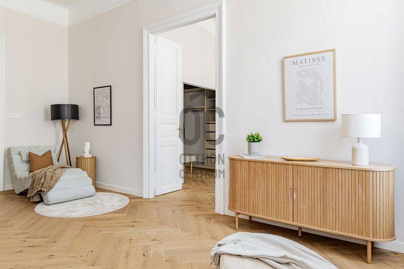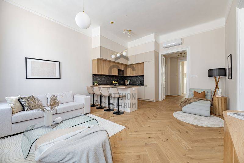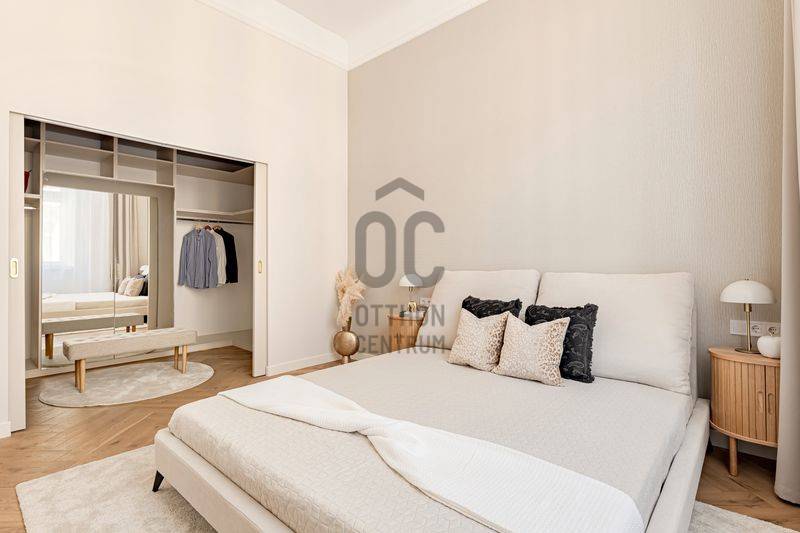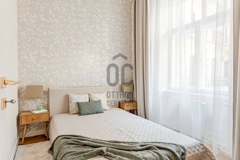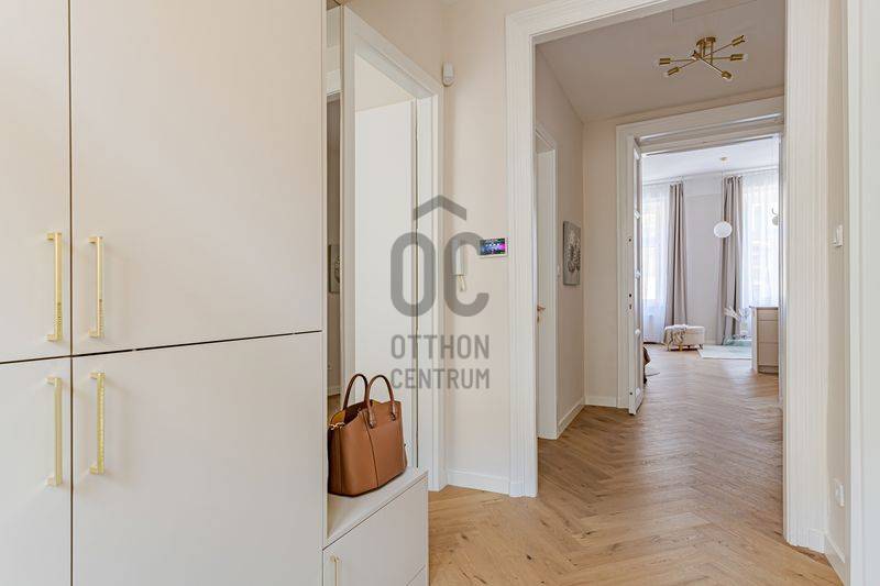 FELÚJÍTOTT, ELEGÁNS, 3 HÁLÓSZOBÁS OTTHON A KODÁLY KÖRÖNDNÉL.Budapest VI. kerület, Felső erdősor utca.Csendes, napfényes ingatlan központi helyen, metrótól 100 méterre.Kiváló lehetőség hosszú távú kiadásra is.A LAKÁS:Budapest belvárosában, egy jó állapotú és karbantartott liftes épületben, a Kodály Köröndtől 1 perc sétára, 2. emeleti, 3 hálós, 2 fürdőszobás, magas minőségben felújított ingatlan.2025 nyarán készült el a teljes körű felújítás, lakberendező által tervezett, azonnal költözhető. A munkák során az összes víz és villanyvezeték ki lett cserélve. A fűtés házközponti rendszerű. A melegvizet egy Ariston EVO energiatakarékos elektromos vízmelegítő biztosítja.A klimatizált lakás 91 m2-es. Az ingatlanba belépve egy nagy méretű előszobába érkezünk. Ebből nyílik két kisebb méretű szoba. Továbbhaladva egy előtérbe érünk, ahonnan a 2 fürdőszobába juthatunk. Az egyik fürdőben walk-in zuhanykabin, a másikban pedig fürdőkád van.A 30 m2-es nappali-konyha-étkező hatalmas ablakai miatt nagyon világos, napos helyiség. Az új Whirlpool gépesített konyha indukciós főzőlapot, légkeveréses sütőt, mikrót, páraelszívót, mosogatógépet, hűtőt tartalmaz. Az impozáns méretű hálószobához egy 8m2-es walk-in gardróbszoba tartozik, mely igazi luxus-érzést nyújt.Az ingatlanban egyedi készítésű beépített bútorok találhatók, melyek sok tárolási lehetőséget biztosítanak.