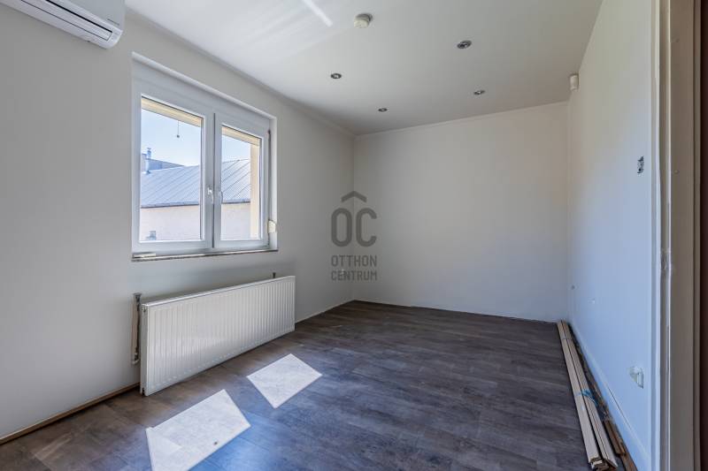 Mindenképpen látnia kell....Gyöngyösön a belvárosától 3 percre eladó egy 94 m2-es felújított társasházi lakás.Az ingatlan egy 1970-es években téglából épült, 2008-ban teljeskörűen felújított belső 2 szintes, 2 lakásos társasház hátsó lakása.A telken lévő két lakás külön-külön és egyben is eladó.A felújítás során kicserélték a nyílászárókat, a villanyhálózatot, felújították a fürdőszobákat, a burkolatokat és a külső szigetelést.Ez a 94 m2-es /földszint+tetőtér/ 3 szobás, 2 fürdőszobával és 2 wc-vel rendelkezik.A földszinti 44 m2-es részen nappali, étkező+konyha, fürdőszoba, közlekedő, és wc található.A tetőtérben, kettő hálószoba, közlekedő, fürdőszoba, és wc került kialakításra.A lakás alatt kb 25 nm-es pince húzódik.A lakáshoz, a tulajdonosok még hozzá építenek egy fedett teraszt, és 2 autó számára, fedett beállót igény esetén.Az épület belső elrendezésének köszönhetően kiválóan megfelel akár kisgyermekes családosok részére is, de akár irodának és orvosi rendelőknek is berendezhető.Helyi építési szabályzat szerint: a) kereskedelmi, szolgáltató,b) hitéleti, nevelési, oktatási, egészségügyi, szociális,c) kulturális, közösségi szórakoztató,d) szállás jellegű,h) igazgatási, iroda,i) kézműipari ésj) sportrendeltetést is tartalmazhat az épület.Figyelem!Lakás, nyaraló, nagyértékű autó beszámítására is nyitott a tulajdonos!Amennyiben forrásbevonásra van szüksége a vásárláshoz, egyedülálló megoldásokkal támogatjuk döntését.Intézze hitelfelvételét az Otthon Centrum szakképzett hitelreferensei segítségével.CSOK,- Falusi CSOK,- személyi kölcsön –, Babaváró hitel,- jelzáloghitel-18 bank,- egyedi, személyre szabott- bankfüggetlenAjánlataink, NEM CSAK a nálunk vásárolt ingatlanokra vonatkoznakSpórolja meg Ön is az illetéket CSOK felvétellel, amelyben irodánk hitel és támogatás szakértője díjmentesen segítségére lesz!\"Díjmentes hitelügyintézés!!