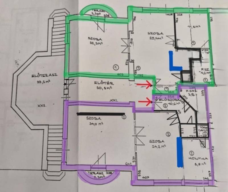 Újdonság az ingatlanpiacon, Herminamezőn, platánfák árnyékában megbújó ingatlanunk került eladósorba!A közkedvelt Amerikai úthoz közel,1918- ban épült villa épület magasföldszintjén helyezkedik el, (alaprajzon zölddel körbe jelölve látható). A ház historizáló - eklektikus stílusban épült, az építész annak idején a házat saját magának tervezte, napjainkban folyamatosan karbantartott, állapot megőrzése, illetve javítása érdekében a társasház folyamatosan törődik vele, pályázatokon indul!Egyik különlegessége, hogy a társasházba egy tekintélyes 33 nm-es külső teraszról jutunk be, majd az ingatlant egy zárt lépcsőházból közelíthetjük meg, ami a szomszéd ingatlannal kizárólagos használatban van, (a szomszéd 85 nm-es lakás szintén eladó és a kínálatunkban megtekinthető) Az ingatlan az elmúl években irodaként funkcionált, de a belső tér kialakítása alkalmassá teszi lakásként való használatra is, amerikai konyhás nappali +2 vagy kis átalakítással 3 hálószoba állhat rendelkezésre.Bejáratnál továbbhaladva rögtön megnyílik előttünk a tér, a ragyogóan napfényes nappalis konyhába érkezünk meg, valamint innen elérhető egy vendég wc, tágas dolgozó/háló aminek egy hangulatos kertre néző félkör erkélye is van, valamint helyet kapott egy külön háló és egy zuhanyzóval beépített tágas fürdőszoba is.Fűtése önnáló gáz církó, tájolása d-dnyi ezért napos, világos, klímával felszerelt, rezsije alacsony gáz és az elektromos áram költsége átlag: 20.500 ft/hó. Állapotát tekintve igényes, rendezett, a fotón látható bútorok igény esetén külön megegyezés alapján megvásárolhatóak.Parkolásra egy autónak 13,5 nm-es garázs áll rendelkezésre, ára 10 mft, amit a vételár nem tartalmaz. További tároló a pince szinten rendelkezésre áll.Remek lokációnak köszönhetően egyaránt ajánlom családosoknak, vagy vállalkozóknak is, hiszen egyaránt kiválló lakni, vagy irodai használat céljából is. A közvetlen közelben megtalálható tömegközlekedés, bevásárlási lehetőség, iskola, óvoda stb.Időpont egyeztetésés alapján megtekinthető!