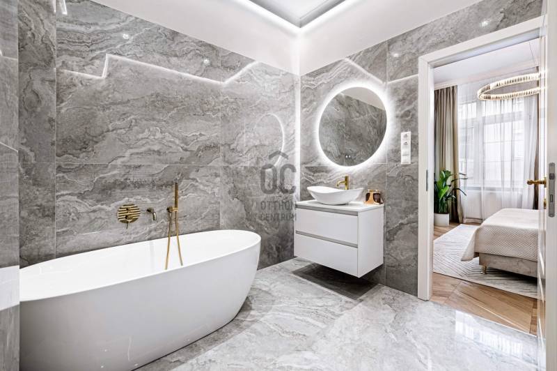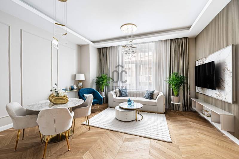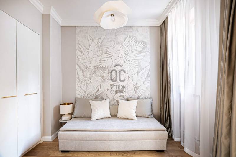 V. kerület Szemere utcában, pár perc sétára a Parlamenttől, 75m2-es nappali + 2 hálószobás, duplakomfortos, 2. emeleti, utcai nézetű, luxuslakás eladó. Az ingatlan prémium minőségű felújításon esett át, melynek során a legkiválóbb minőségű anyagokat használták fel, a lakás minden részletében az eleganciát tükrözi. A lakás amerikai konyhás nappalival rendelkezik, mindkét hálószobához külön fürdőszoba tartozik: a fő hálószobához egy elegáns káddal, WC-vel és bidével felszerelt fürdőszoba kapcsolódik, míg a második szobához egy modern zuhanyzós fürdő. Az ingatlan prémium minőségű bútorokkal és gépekkel együtt eladó, így az új tulajdonos azonnal beköltözhet egy teljesen felszerelt, exkluzív otthonba. A teljes körű felújítás során megtörtént a víz- és villanyvezetékek, valamint a fűtéscsövek, radiátorok cseréje. Designer csillárok, beépített szekrények, minőségi szaniterek és prémium burkolatok kerültek beszerelésre. A 3,30 méteres belmagasság és a chevron mintás tölgyfa parketta különleges, elegáns hangulatot kölcsönöz az otthonnak. A konyha teljesen gépesített, AEG márkájú készülékekkel felszerelt: mosogatógép, hűtő fagyasztóval, sütő, mikró, főzőlap, páraelszívó és mosógép is rendelkezésre áll. A lakás kényelmét két légkondicionáló és automata redőnyök plusz sötétítők biztosítják. A fűtést házközponti rendszer biztosítja, a közös költség vízzel együtt 53.709.- Ft havonta. A társasház a klasszikus budapesti építészeti stílust képviseli. Az épület az 1900-as évek elején épült, és azóta számos felújításon esett át, megőrizve eredeti báját és eleganciáját. Az ingatlan, a lifttel felszerelt társasház 2. emeletén található a lépcsőházból nyílik a bejárati ajtó. A közvetlen közelben több busz- és villamosvonal elérhető, amelyek gyors és kényelmes kapcsolatot biztosítanak a város többi részével. Ez a lakás nem csak otthonként, hanem befektetésként is tökéletes választás azok számára, akik a belvárosi luxust és kényelmet keresik. Az ingatlan minden részlete a legmagasabb színvonalat képviseli, így garantáltan megfelel a legigényesebb vásárlók elvárásainak is.Jöjjön és helyezze magát kényelembe új otthonában!Várom megtisztelő hívását a hét minden napján!
