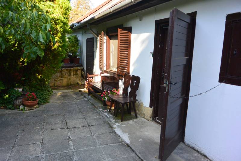 Eladó egy présház jellegű sváb falusi porta és pince együttes a XII. kerületben.A Svábhegy szőlészeti és borászati hagyományainak egyik utolsó hírnökeként műemléki védelmet élvez.A présházat lakóházzá alakították, de az eredeti építészeti forma és stílus jegyeket megőrizték.Megmaradt a látványos pince és az egykori helyi szőlő művelési kultúrára jellemző támfalas-teraszos kert.Az 1830-as években épült házban két társasházi lakás található külön lekerített kertrésszel. A hangulatos, ősfás, teraszos kert kb. 900 m2.Az eladásra kerülő ingatlan:- 33 m2-es 2 szobás lakás. (Az egyik szoba jelenleg az udvarról nyílik és teljesen felújítandó.)- 2 db pince - összesen 50 m2 (Az egyik pince elölről nyitott és felújítást-helyreállítást igényel. Feltehetőleg ennek mérete a jelenleg láthatónál jóval nagyobb)- kő és tégla falazat (60 cm vastag) 5 cm hungarocell szigeteléssel.- elektromos fűtés- buszmegálló 300 méteren belül található. (21, 21A, 212, 221)- fogaskerekű megálló 400 méter- bevásárlási lehetőség 400 méterAlkalmas lehet idegenforgalmi - vendéglátási célra, borpincének, rendezvény helyszínnek.