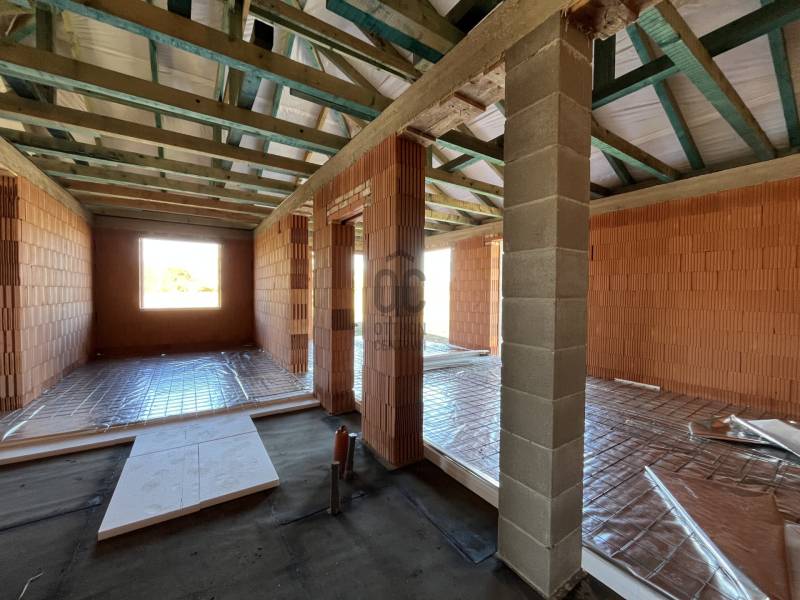 Kiváló ÁR-ÉRTÉK arány!Debrecen Halápon, értékesítésre kínálunk egy buttó 125 M2-es, nappali+3 hálószobás,ÚJ ÉPÍTÉSŰ ikerházat, melynek az egyik fele már értékesítésre került!Az építkezés folyamatos, készültségi szintje a képeken látható állapot!A várható befejezés: 2026.02.28.A kiváló referenciákkal rendelkező kivitelezőtől eladó ez bruttó 125 m2-es, FÖLDSZINTES, téglaépítésű családi ház!Tágas, benapozott 36 M2-es konyha-étkező-nappali, 3 élhető hálószoba, nagy méretű fürdőszoba, kamra, külön wc, közlekedő, előszoba, egy 18 M2-es garázs, valamint egy 14 m2-es nappaliból megközelíthető jól benapozott teraszból áll.Az ingatlan nagycsaládosoknak, összeköltözőknek, illetve több gyermeket vállalóknak kitűnő, hosszútávú választás lehet!Paraméterek, Adatok:- a ház fűtése 24 kw-os kondenzációs gázkazánnal történik, mindenütt padlófűtéssel lesz megoldva- 3 rétegű, 5 légkamrás műanyag nyílászárók- Porotherm 30-as téglafalazattal, betoncserép ( Leier Toscana Classic) héjazattal, 15 cm-es homlokzati szigeteléssel,30 cm-es födémszigeteléssel, illetve 10 cm-es aljzatszigeteléssel lesz ellátva- Belső ajtók 110000Ft/ db- hidegburkolat 8000-meleg burkolatok 8000Ft/nm-es áron szabadon választhatók!- Teraszok burkolása szürke kombi térkővel 5000 FT/nm- Szaniterek megadott értékben a műszaki leírásban szabadon választhatókHaláp 16 km távolságra helyezkedik el Debrecentől, főúton jól megközelíthető autóval illetve közvetlen buszjárattal,ezért egyre több fiatal választja magának és családjának lakhatását megoldva. Az utca lakott, felújított, rendezett családi házak szomszédságában található az ingatlan, aszfalt úttól 150 méterre!Az ingatlan alkalmas Babaváró, CSOK+, 3%-os Start Otthon hitel igénylésére!További információért keressen telefonon!