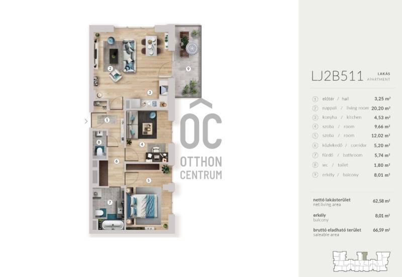 Projekt bemutatásaProjekt leírásA 147 lakásos My Garden 2 lakófejlesztés Budapest XIII. kerületének zöldövezeti részén, a Rákos-patak szomszédságában épül, ahol a modern élet és a természet harmóniája egyedülálló lakóélményt biztosít.A My Garden második ütem lakásai is magas szintű környezettudatosságot és kiemelkedő műszaki tartalmat képviselnek. Olyan fenntarthatósági megoldásokat alkalmazunk a lakóparkon, mint a megújuló energiaforrások, környezettudatos anyaghasználat, esővíz-újrahasznosítás, szelektív építési hulladékkezelés és felület hűtés-fűtés. A háromrétegű nyílászárók kiváló hő- és hangszigetelést biztosítanak, így a Le Jardin második ütemének lakásai alacsony fenntartási költségekkel és optimális komfortérzettel bírnak majd.A Váci úttól mindössze 10 percre található. A környék kifejezetten jó infrastruktúrával rendelkezik: oktatási intézményekben, bevásárlási lehetőségekben szociális-, sport- és egészségügyi létesítményekben bővelkedik a terület.A 6. emeleti penthouse lakásokból pazar kilátás nyílik a budai hegyekre, a kényelmet pedig biztosítja, hogy a nagy teraszon jacuzzi-nak kialakítható hely is található.A lakásokat átlagon felüli műszaki tartalom, energiahatékony- és gazdaságos üzemeltetés jellemzi.Környezettudatos beruházás, melynek részei a teljes mértékben- megújuló energián alapuló gépészeti megoldások,- a környezettudatos anyaghasználat,- a szelektív hulladékkezelés,- a környezettudatos vízfelhasználás,- az esővíz újrahasznosítása,- illetve a felület hűtés-fűtés.KÖZÖSSÉGI ELŐNYÖK:- közösségi nappali,- Business Corner,- közösségi BBQ hely,- fészer,- csomagpont.A fizetési ütemezés két részletben: 20% szerződéskötéskor és a fennmaradó 80% százalék a használatba vételi engedély kiadása után fizetendő a projektet finanszírozó bank felé.Átadás várható dátuma: 2027. II. negyedévTovábbi információért keressen bizalommal!