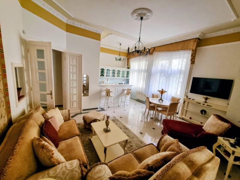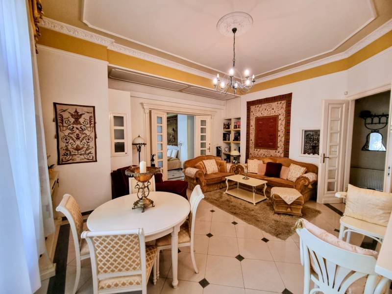 Herminamezőn stílusos villa épületben, 2 lakás egyben eladó!A társasház 1918- ban épült, historizáló - eklektikus stílusban, az építész annak idején a házat saját magának tervezte, napjainkban folyamatosan karbantartott, állapot megőrzése, illetve javítása érdekében a társasház folyamatosan törődik vele, pályázatokon indul!Eladó ingatlanok a magasföldszinti szinten helyezkednek el, 85 illetve 86 nm nagyságúak, a bejáratok egy kizárólagos használatban lévő lépcsőházból közelíthetőek meg. Több egyediséggel is rendelkezik: a társasházba szintén egy kizárólagos használatban lévő nagy, 33 nm-es teraszról jutunk be, ezáltal a társasháztól kicsit elkülönül, de mégis a részét képezi, minden időszakban beragyogja a nap, hiszen tájolás szempontjából k-ny-i irányú, két félkör erkéllyel is rendelkeznek, egyben és külön is használható, utóbbi években az alaprajzon zölddel jelölt ingatlan irodának, míg a lilával jelölt lakásként volt használva.Kifejezetten előnyös két generációs otthont keresőknek is, külön mérőórákkal és fűtési rendszerrel, konyhákkal, fürdőszobákkal rendelkeznek, tárolásra pincében 17 nm-es tároló, míg a kertben gépkocsinak garázs,+ 10 mft amit a vételár nem tartalmaz, valamint felszíni kocsibeálló állhat rendelkezésre.Kifejezetten igényesek, szép állapotúak, klímával felszereltek, bútorok igény esetén megvásárolhatóak.Lokáció rendkívül jó, Zugló egyik legkeresettebb részén helyezkedik el, tömegközlekedéssel könnyen megközelíthető, ezért vállalkozás céljából vásárlóknak is ajánlom, ügyvédi vagy könyvelőiroda, orvosi rendelő, igények szerint bármilyen tevékenység elképzelhető benne.A környék nyugodt és családias, ideális választás azok számára, akik a város közelségét keresik, de értékelik a zöld környezetet is. Ez a lakás tökéletes választás lehet azok számára, akik elegáns és kényelmes otthont keresnek Budapest egyik legkedveltebb részén.Időpont egyeztetéssel rugalmasan megtekinthető!