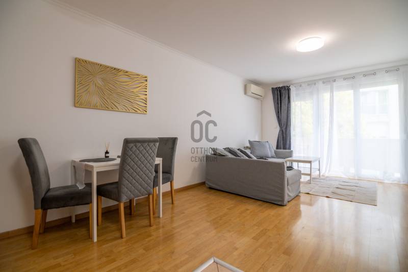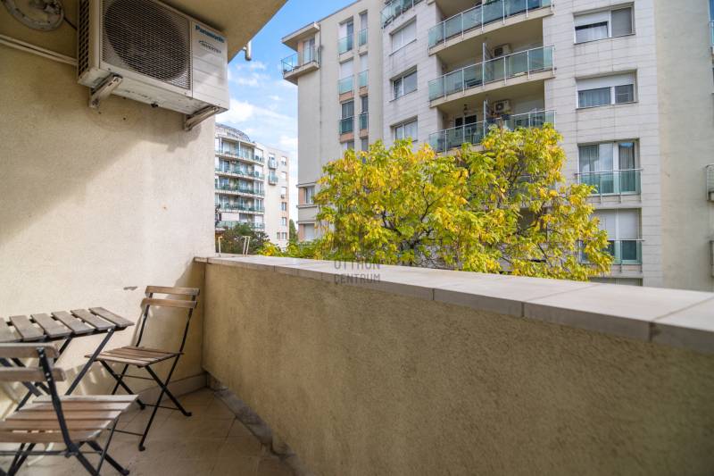 XIII.kerületben Angyalföldön 2006-ban épült társasházban kiváló állapotú, emeleti 48 m2 2 szobás lakás + 5 m2 terasszal eladó!Hangulatos, otthonos és a nagy ablakoknak köszönhetően kifejezetten világos belső udvarra néző lakás.-A lakás adottságai kiválóak, világos, csendes, a terasz-A teraszt a nappaliból és a hálószobából is meg lehet közelíteni.-Klímával felszerelt a nappali és a hálószoba is.-Külön nyíló fürdőszobával is wc-vel.-Mindegyik ablak redőnnyel felszerelt.Infrastuktúra kiváló, minden megtalálható a környéken, élelmiszerboltok,zöldséges, iskolák, óvodák, konditerem, éttermek, parkok stb.Béke tér 3 perc, ahol a 14,41,1,1M villamos és buszok elérhetőek.Ajánlom saját célra, illetve befektetésnek is, mivel a központi lokáció és a lakás kiváló állapota miatt gyorsan bérbeadható.Ez az ingatlan a \"Hűség csomag\" megbízási portfólióhoz tartozik. Részletek az Otthon Centrum weboldalán.