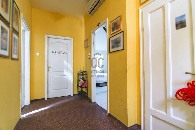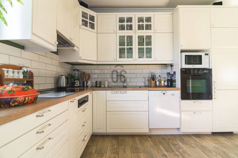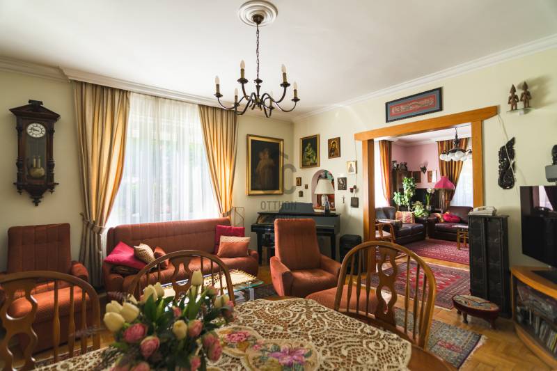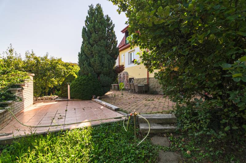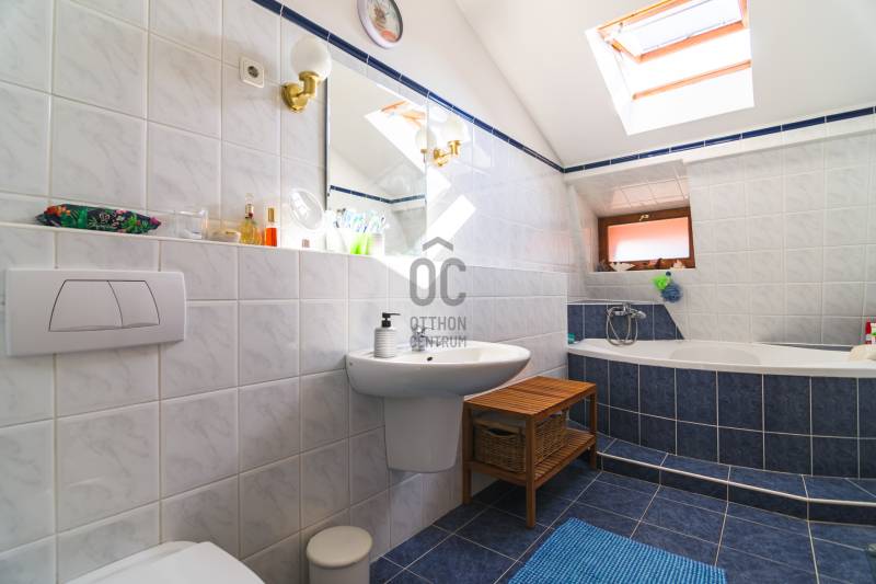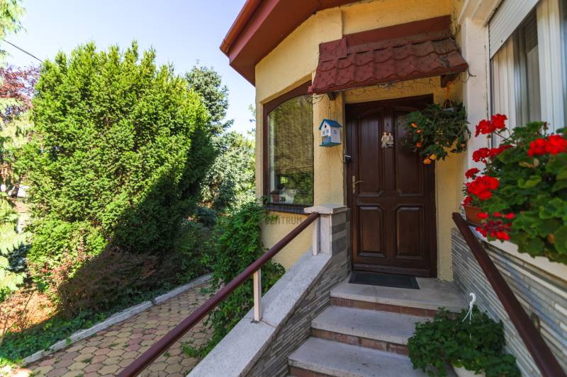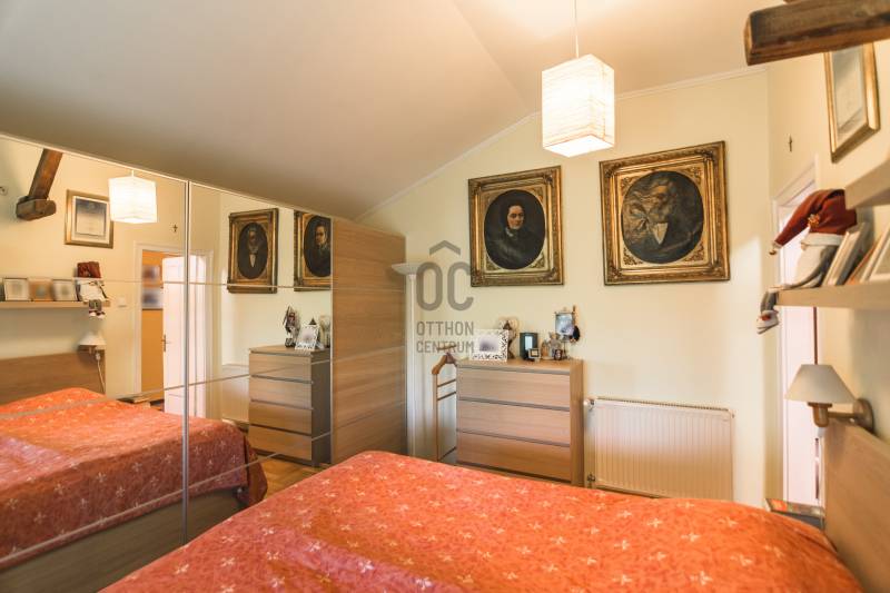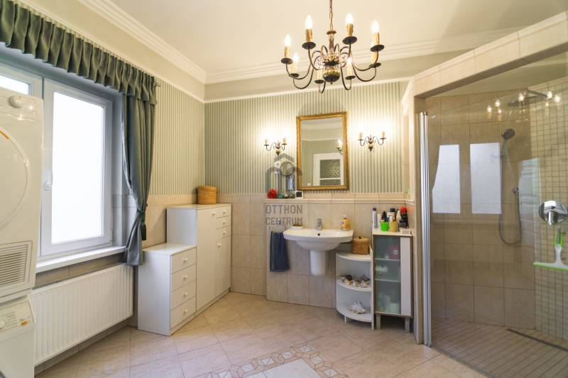 Budaörs Kamaraerőn, a hely egyik legkedveltebb, elegáns utcájában eladó egy otthonos kialakítású, 6 szobás felújított családi ház.A modern polgári stílusú ház praktikus és tetszetős belső kialakítását lakberendezői tervek alapján kivitelezték. A földszinten ízléses, kandallós, hagyományos stílusú nappalit, hozzá kapcsolódó társalgót, modern, ikea berendezéssel rendelkező konyha-étkezőt, kamrát és hatalmas, nagy ablakos világos fürdőszobát találunk. Az emeleten négy nagy méretű hálószoba (ezekből kettő terasz-kapcsolatos), világos fürdőszoba, külön WC van. Az emeleti teraszról a budaörsi panorámában gyönyörködhetünk. A lakótér alatt több helyiségből álló félszuretén/pince található, amely praktikus tárolási lehetőséget biztosít, és itt akár kondiszoba is kialakítható. A ház egy nagyobb család igényeit is kiszolgálja. A házban lévő meleg- és hidegburkolatok jó minőségűek, újszerű állapotúak. A fűtés korszerű, zárt égésterű kondenzációs gázkazánról üzemel. Mindkét lakószinten split klíma is üzemel. A ház 380V-os ipari árammal is ellátott és külön mért éjszakai árammal is rendelkezik. A tető 5 éves, a külső nyílászárók újak; a belsők újak, illetve a ház stílusát megtartva modernizálásra, felújításra kerültek. Ez az otthon remekül élhető. A házat 1170 m2-es ősfás kert öleli körbe, amely a szomszédok irányából és az utca felől is elrejtett. A gépkocsik beállóhelye a pihenőkerttől látványilag elkülönül. A kertben lévő pince és a verem ideálisak bor tárolására, a terasz és a kert pedig extra lehetőségeket biztosít a kikapcsolódásra. A tömegközlekedés kiváló: a díjmentes utazást biztosító budaörsi helyi buszjárat megállója a közelben található, a BKK járatainak megállói pedig pár perc sétával elérhetők. Az M7, M1, M0 autópályák, bevásárlóközpontok 10 perc alatt megközelíthetőek. Óvoda, iskola, művelődési ház a közelben van. A környék jó levegőjű, igazi kertvárosi hangulatú - sétálásra, kikapcsolódásra, feltöltődésre alkalmas. Vadonatúj ajánlat!További részletek és a megtekintés miatt keressen bizalommal! Hétvégén is hívhat.