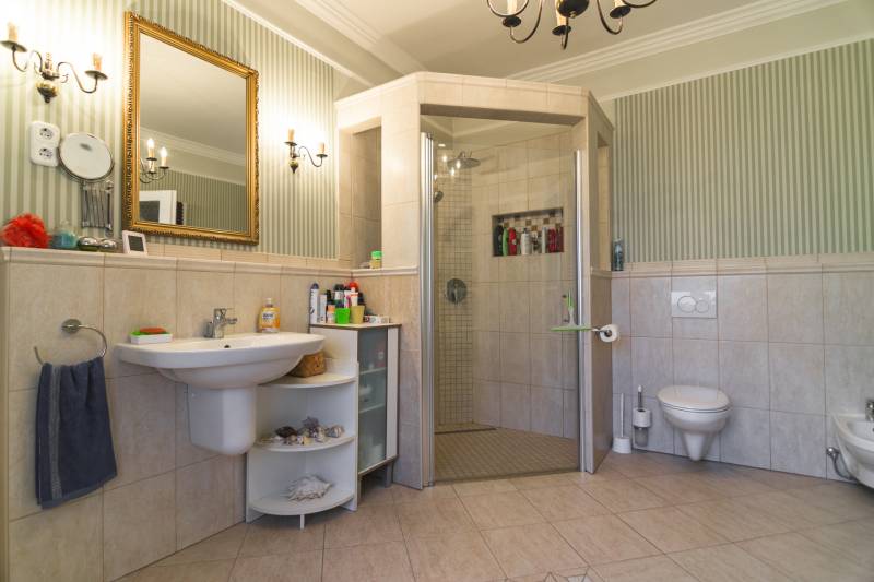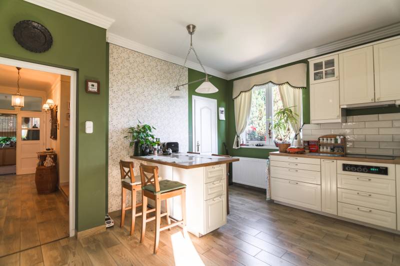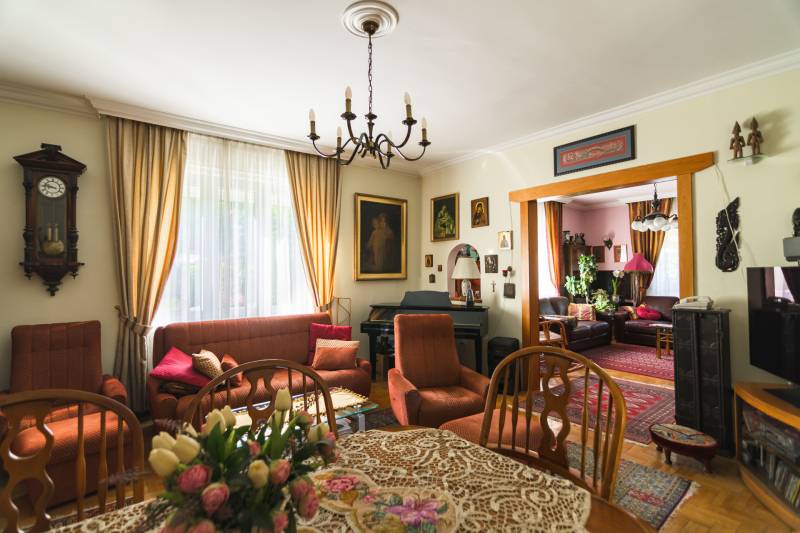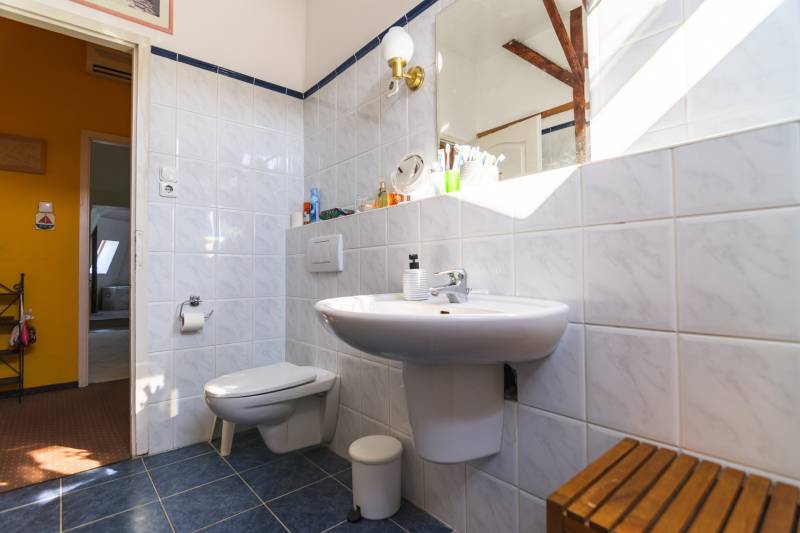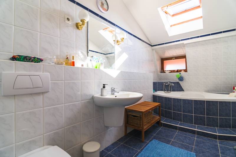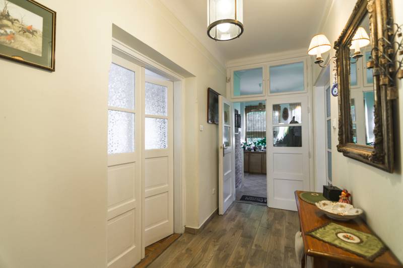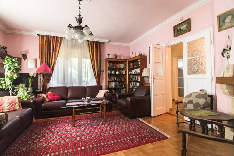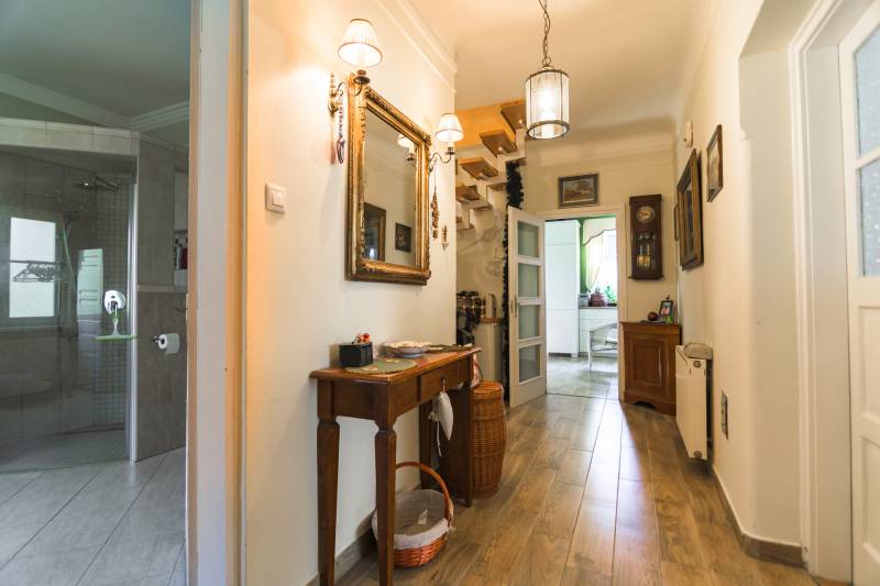 Budaörs Kamaraerőn, a hely egyik legkedveltebb, elegáns utcájában eladó egy otthonos kialakítású, 6 szobás felújított családi ház.A modern polgári stílusú ház praktikus és tetszetős belső kialakítását lakberendezői tervek alapján kivitelezték. A földszinten ízléses, kandallós, hagyományos stílusú nappalit, hozzá kapcsolódó társalgót, modern, ikea berendezéssel rendelkező konyha-étkezőt, kamrát és hatalmas, nagy ablakos világos fürdőszobát találunk. Az emeleten négy nagy méretű hálószoba (ezekből kettő terasz-kapcsolatos), világos fürdőszoba, külön WC van. Az emeleti teraszról a budaörsi panorámában gyönyörködhetünk. A lakótér alatt több helyiségből álló félszuretén/pince található, amely praktikus tárolási lehetőséget biztosít, és itt akár kondiszoba is kialakítható. A ház egy nagyobb család igényeit is kiszolgálja. A házban lévő meleg- és hidegburkolatok jó minőségűek, újszerű állapotúak. A fűtés korszerű, zárt égésterű kondenzációs gázkazánról üzemel. Mindkét lakószinten split klíma is üzemel. A ház 380V-os ipari árammal is ellátott és külön mért éjszakai árammal is rendelkezik. A tető 5 éves, a külső nyílászárók újak; a belsők újak, illetve a ház stílusát megtartva modernizálásra, felújításra kerültek. Ez az otthon remekül élhető. A házat 1170 m2-es ősfás kert öleli körbe, amely a szomszédok irányából és az utca felől is elrejtett. A gépkocsik beállóhelye a pihenőkerttől látványilag elkülönül. A kertben lévő pince és a verem ideálisak bor tárolására, a terasz és a kert pedig extra lehetőségeket biztosít a kikapcsolódásra. A tömegközlekedés kiváló: a díjmentes utazást biztosító budaörsi helyi buszjárat megállója a közelben található, a BKK járatainak megállói pedig pár perc sétával elérhetők. Az M7, M1, M0 autópályák, bevásárlóközpontok 10 perc alatt megközelíthetőek. Óvoda, iskola, művelődési ház a közelben van. A környék jó levegőjű, igazi kertvárosi hangulatú - sétálásra, kikapcsolódásra, feltöltődésre alkalmas. Vadonatúj ajánlat!További részletek és a megtekintés miatt keressen bizalommal! Hétvégén is hívhat.