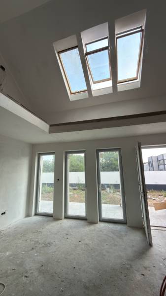 Eladó egy 164 m² hasznos alapterületű, 5 szobás családi ház, amelyhez 28 m²-es kerámia burkolatú terasz és 550 m²-es telek tartozik. A ház tágas terekkel, modern elrendezéssel és kiemelkedő műszaki felszereltséggel várja új tulajdonosát.Főbb jellemzők-Szobák: 5 szoba + nappali + étkező + konyha + 20 m² padlás tároló-Fürdőszobák: 3 külön fürdőszoba (földszinten és tetőtérben)-Parkolás: beépített garázs-Terasz: 28 m², prémium kerámia burkolattal⚙️ Műszaki megoldások-Falazat: POROTHERM 30 N+F + 15 cm AUSTROTHERM szigetelés-Tető: TERRAN Zenit antracit cserép, dupla réteg ROCKWOOL szigetelés-Nyílászárók: hőszigetelt műanyag ablakok + VELUX tetősík ablakok-Burkolatok: laminált parketta a szobákban, fagyálló kerámia a vizesblokkokban és a nappaliban-Homlokzat: fehér nemesvakolat antracit díszítésekkel-Okosotthon rendszer: teljes házvezérlés előkészítve-Biztonság: kiépített okos kamera rendszer✨ Kényelmi extrák-Tágas, napfényes nappali-étkező-Modern konyha elrendezés-Saját garázs és kényelmes parkolási lehetőségElhelyezkedés és közlekedésA ház csendes, családbarát kertvárosi övezetben található. A közelben óvoda, iskola és bevásárlási lehetőségek könnyen elérhetők.Debrecen autóval kevesebb mint 15 perc alatt megközelíthető, rendszeres buszjáratok is elérhetők, így a mindennapi ingázás is kényelmes.Teljesen befejezve is megvásárolható, 120Mft az ára az ingatlannak teljesen igény szerint alakítva!Ez az otthon a modern luxus és a praktikus megoldások találkozása.Hívjon még MA, és egyeztessünk időpontot, nézze meg személyesen is!