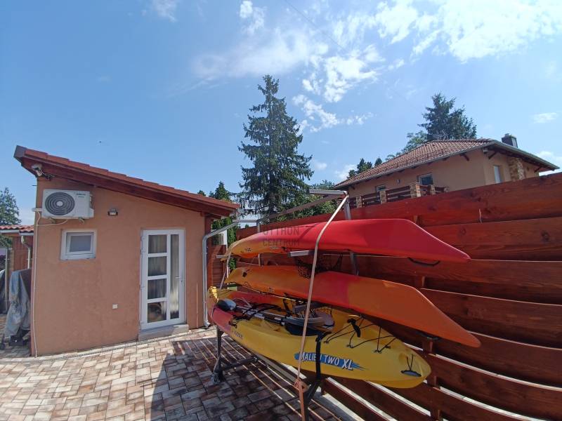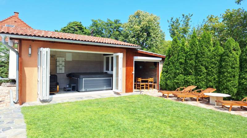 KIEMELT AJÁNLAT A BALATON DÉLI PARTJÁN, BALATONMÁRIAFÜRDŐ SZÍVÉBEN, A STRANDTÓL ÉS A HAJÓÁLLOMÁSTÓL PÁR PERCRE. EGY IGAZÁN KÜLÖNLEGES, PRÉMIUM MINŐSÉGŰ INGATLAN, AMELY NEM CSUPÁN LAKÓHELY, HANEM EGY ÉLETSTÍLUS MEGTESTESÍTŐJE IS.Vízközeli nyaralóra, állandó balatoni otthonra vágyók illetve befektetők figyelmébe ajánljuk! Ide csak be kell költöznie!A kiváló állapotban lévő, 3 lakrészből álló mediterrán hangulatú épületegyüttes 648 nm szépen gondozott telken helyezkedik el, modern technikai kivitelezésben, okos otthon funkcióval épült. 8 szobával, valamint 3 fürdőszobával, 3 gépesített konyhával, kültéri medencével, nagy teraszokkal, wellness részleggel várja új tulajdonosát. Az ingatlan ideális választás lehet családok számára, akik a kényelmes és tágas életteret keresik. Befektetési célra is kitűnő lehetőséget kínál, hiszen a Balaton közelsége és a környék turisztikai vonzereje garantálja a jövedelmezőséget. A Nyugati-övcsatornára való panorámás kilátás biztosítja, hogy a természet szépségét mindennap élvezheti illetve közvetlen vizi úton is kijuthat a Balatonra.AZ INGATLAN FŐBB JELLEMZŐI:- kiváló lokáció- közvetlenül a Nyugati-övcsatorna partján- a szabad strand csupán 400 méterre- saroktelek- ingatlan nyilvántartás szerint:LAKÓHÁZ, UDVAR, GAZDASÁGI ÉPÜLET- 3 lakrészből álló, prémium minőségben épült tégla épület- okos otthon funkció- 202 nm hasznos alapterület ( bruttó 269 nm)- 40 méter széles utcafront- teljesen körbe kerített- az esztétikus kőkerítés biztosítja a belső kert intimitását- 2020-ban épült 2 szintes apartmanház ( 50nm és 40nm hasznos területtel)- 2023-ban elkészült földszintes lakóház ( 82nm)- önálló wellness részleg (31,5nm)- gáz cirkó fűtés, padlófűtéssel mind a 3 lakásban- kiegészítő fűtés 3 kandallóval biztosított- 3 gépesített konyha (minőségi elektromos berendezések, mosógépek, szárítógépek, igényes bútorzat, vízlágyító)- az épület hűtéséről 7 klíma gondoskodik- motoros alumínium redőnyök, szúnyoghálók, háromszoros üvegezésű ablakok- grafitos hőszigetelés- kívül-belül terméskő és tégla burkolatok- kamera- és riasztórendszer- 3x32 Amper, ipari áramTÁGAS TEREK, EGYEDI BELSŐ ELRENDEZÉS, LETISZTULT FORMÁK:I. LAKÓHÁZ: kertkapcsolatos nappali/étkező, konyha, kamra, 2 külön nyíló szoba, mini wellness rész, fürdőszoba/WCII. földszinti apartman: konyha/nappali/étkező, fedett terasz, hálószoba, kamra, gyermek kuckó (gardrób), fürdőszoba/WCIII. emeleti apartman: lépcsőház, gépészeti helyiség, konyha/nappali/étkező, terasz, hálószoba, fürdőszoba/WCIV. wellness: party helyiség (épített kemencével biliárddal, csocsó asztallal, darts, pingpongasztal), jakuzzi rész, vendég WC, szaunaSZÉPEN GONDOZOTT, PARKOSÍTOTT KERT ÖRÖKZÖLDEKKEL:- 648 nm teleknagyság- 8 m széles elektromos tolókapu- 2 külön gyalogos bejárat- fűtött, ellenáramoltatós medence- finn szauna- klimatizált wellness részleg: jakuzzi, vendég WC- kertkapcsolatos party helyiség- kerti bútorok, nyugágyak, napozóágyak- 2 kerti zuhany- 4 autó részére térkövezett zárt udvari beálló (70nm)- automatizált kerti világítás- vakondháló, locsolórendszer, fűnyírórobot- épített kemence- a kert öntözését fúrt kút biztosítja- 2 kerékpártároló kerékpárokkal- sporteszközök, 3 kajak, tároló állvánnyal, biztonsági felszereléssel- kerti halpucoló, szalonnasütőPLUSZ EGY EGYEDI LEHETŐSÉG, HORGÁSZAT KEDVELŐINEK: a ház előtt lévő stég és csónakhely és horgászcsónak (elektromos motorral, fürdőlétrával, halradarral, takaróponyvával)Az ingatlan per- és tehermentes, rövid idő alatt birtokba vehető.INGÓSÁGOK: A hirdetésben megadott ár az ingatlanra vonatkozik, a felsorolt ingóságok, a teljes bútorzat, edények, műszaki berendezések, kerti bútorok, széf, étkészletek, ágyneműk, törölközők, több évre való száraz fa, csónak EXTRA FELÁRA 20 MILLIÓ FORINT. Az ingatlan kizárólag a tartozékokkal együttesen eladó!A környék csendes és biztonságos, ideális választás a pihenni vágyók számára, akik a Balaton közelségét keresik. A közlekedési lehetőségek is kedvezőek: könnyen megközelíthető autóval, M7 autópálya, 7-es főút illetve a tömegközlekedési eszközök is rendelkezésre állnak ( vasútállomás és buszmegálló pár perc gyalog) A közelben található posta, boltok, éttermek, fagyizók és egyéb szolgáltatások biztosítják, hogy minden szükséges kényelem meglegyen. A vízpart közelsége, a szabadidős tevékenységek, mint a kerékpározás, túrázás és a vízi sportok, mind hozzájárulnak ahhoz, hogy ez a hely valóban különleges legyen.A befektetési lehetőségek mellett a családi otthonként való használat is vonzó, hiszen a Balaton körüli életstílus és közösség valóban egyedülálló.Amennyiben felkeltette érdeklődését ez a kivételes ingatlan, várjuk jelentkezését, jöjjön el és nézze meg, hogy megtalálja az álmai otthonát vagy a tökéletes befektetést!Az adatok és az alaprajzok tájékoztató jellegűek.