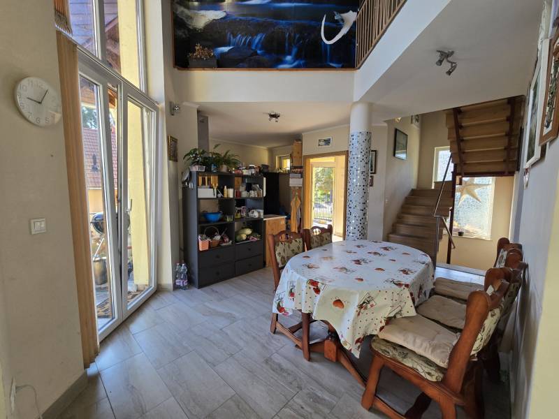 Veresegyház csendes, mégis kiválóan ellátott környékén kínálunk eladásra egy tágas, 160 nm-es családi házat, amely ideális választás lehet családok számára, akik a nyugalmat és a kényelmet keresik. Az ingatlan elhelyezkedése különösen előnyös, hiszen a város központja mindössze néhány perces sétára található, ahol boltok, éttermek és közszolgáltatások széles választéka várja Önt. A környék biztonságos, barátságos légkörével pedig ideális otthont biztosít gyermekes családok számára. A ház 687 nm-es telken helyezkedik el, amely elegendő teret biztosít a szabadidős tevékenységekhez és a kertészkedéshez. Az ingatlan három fürdőszobával rendelkezik, így minden családtag kényelmesen elfér, és a tágas nappali tökéletes helyszínül szolgál a közös családi programokhoz. A nappali világos, napfényes, ami még inkább fokozza az otthon meleg hangulatát. Az erkély, amely 15 nm-es, csodás panorámát kínál, ideális helyszín a reggeli kávézáshoz vagy az esti pihenéshez. A ház állapota átlagos, de kiváló lehetőséget kínál arra, hogy saját ízlésére szabja. A vegyes fűtési rendszer és a klíma biztosítja az otthon kellemes hőmérsékletét évszaktól függetlenül. A környék ellátottsága kiváló, a közlekedési lehetőségek is kedvezőek: a tömegközlekedés könnyen elérhető, így Budapest központja is gyorsan megközelíthető, ami különösen előnyös lehet ingázók számára. Veresegyház nemcsak a családosok, hanem a befektetők számára is vonzó, hiszen a környék folyamatosan fejlődik, és a jövőbeli értéknövekedés szempontjából is kedvező lehetőségeket kínál. A szauna pedig egy extra kényelmet biztosít, ahol a nap végén ki tudja pihenni a fáradalmait. Amennyiben felkeltette érdeklődését ez a nagyszerű ingatlan, ne habozzon kérdésekkel keresni bennünket! Szívesen állunk rendelkezésére, hogy segítsünk Önnek a legjobb döntés meghozatalában, és hogy megtalálja álmai otthonát Veresegyház szívében. Az ingatlan nemcsak egy ház, hanem egy lehetőség, hogy egy új, boldog életet kezdjen el családjával.Udvari fedett beállón napelem, kamerarendszer (4kamerával), 50 méteren belül buszmegálló - ingyenes helyi buszjárattal!További információért, megtekintésért, keressen bizalommal!