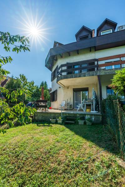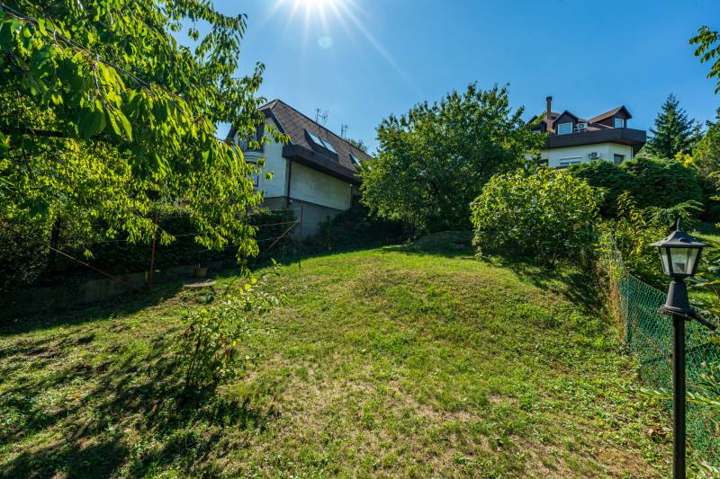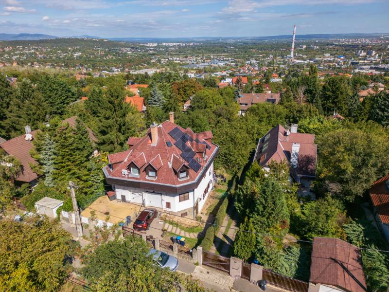 Eladásra kínáljuk a Remetehegyi úton ezt a háromszintes, 270 m²-es ikerházfelet, amely 700 m²-es, saját használatú telekkel rendelkezik. Az ingatlan szintenként 90 m²-es, összesen 7 szobával, így igazán tágas életteret biztosít, valamint akár két különálló lakásra is könnyedén átalakítható.A házhoz önálló pince, garázs és több tárolóhelyiség is tartozik, emellett a padlás további praktikus lehetőségeket kínál. Déli fekvésének és nagy ablakainak köszönhetően a helyiségek világosak, a házból és a kertből pedig gyönyörű, örökpanorámás kilátás nyílik.Az épület 1988-ban épült masszív tégla falazattal, jelenlegi állapota átlagos, részlegesen felújítandó, így új tulajdonosa saját ízlése és igényei szerint alakíthatja. A fűtést gázkazán biztosítja, emellett korszerű napelemrendszer is telepítésre került, amely hosszú távon jelentős rezsicsökkentést eredményez.A 700 m²-es kert ideális helyszín pihenéshez, családi és baráti összejövetelekhez, illetve kertészkedéshez is.A lokáció kiemelkedő: a csendes, zöldövezeti környezet tökéletes nyugalmat biztosít, ugyanakkor a város közelsége, a jó közlekedés és a közeli bevásárlási, oktatási és egészségügyi lehetőségek miatt rendkívül praktikus választás.További részletekért hívjon mielőbb!Egyedi igényekre szabott lakáshitelekkel állunk rendelkezésére. Bankfüggetlen Hitel Centrumunk az országban elérhető összes bank és hitelintézet ajánlatát versenyezteti az Ön számára díjmentesen.Munkatársaink nagy szakmai tapasztalattal várják Önt az előre egyeztetett időpontban akár a normál munkaidő után is.
