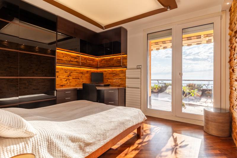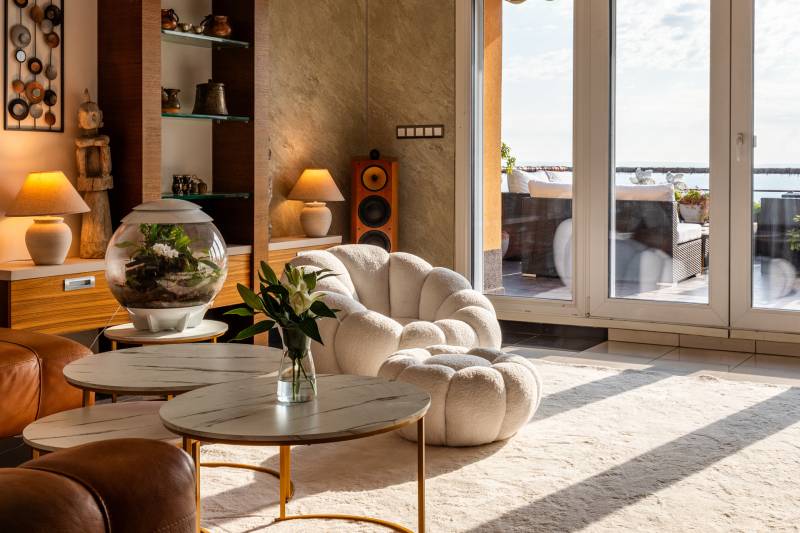 Vannak lakások, ahol a kulcs nemcsak az ajtót nyitja, hanem egy új nézőpontot is a világra. -Üdv itthon! RÖVID ÖSSZEFOGLALÓEladó a III. kerület egyik hangulatos utcájában, a Haránt közben egy 107 m²-es, teljes szintet elfoglaló lakás, 58 m²-es, lenyűgöző panorámás terasszal. A nappali és két hálószoba mellett igazi különlegessége a jacuzzi kád, a szauna szoláriummal, a beépített csúcskategóriás klímák és a modern biztonsági rendszer. A lakás teljes berendezéssel együtt kerül értékesítésre.LOKÁCIÓA Haránt köz a III. kerület egyik rejtett kincse: olyan utca, ahol a városi élet és a budai hegyek közelsége különleges harmóniát teremt. A mindennapokban itt érezni lehet a kertvárosi nyugalmat, miközben néhány perc alatt elérhetjük a belvárost. A környék családias légkörrel, barátságos szomszédsággal és tágas terek ritmusával fogad.A közelben minden megtalálható, ami a kényelmes hétköznapokhoz kell: bevásárlási lehetőségek, szolgáltatások, éttermek, és mindössze pár perc séta a Duna-part, ahol egy esti futás vagy egy nyugodt séta pillanatok alatt kikapcsol. Ez a kettősség – a nyugalom és a városi lüktetés közelsége – adja meg azt a varázst, ami miatt sokan választják új otthonuknak ezt a környéket.Praktikus infók: • Belváros autóval és tömegközlekedéssel 15–20 perc alatt elérhető • Duna-part néhány perc távolságban, sport- és szabadidős lehetőségekkel • Közelben bevásárlási lehetőségek, éttermek, szolgáltatások • Budai hegyek gyorsan elérhetők kirándulásra, kikapcsolódásraAZ ÉPÜLETA Haránt köz 1/A házának második emelete egy külön világ – a teljes szintet ez a lakás foglalja el, így nem osztozik senkivel sem a térben, sem a hangulatban. A belépőt csendes, rendezett környezet fogadja, amely azonnal megadja az otthonosság érzését. Bár lift nincs az épületben, a lakás belső tere teljesen küszöbmentes, akadálymentesített kialakítása a mindennapi kényelmet szolgálja.Itt minden részlet arra emlékeztet, hogy az otthon nem csupán belül kezdődik, hanem az épület atmoszférájával együtt válik teljessé – egyszerre barátságos és intim, miközben méltó keretet ad a lakás különleges adottságainak.Praktikus információk: • A teljes 2. emeletet a lakás foglalja el • Lift nincs az épületben • Akadálymentesített belső tér (küszöb nélküli kialakítás) • Rendezett társasház, közös képviselet közvetlen szomszéd általA lakáshoz nem tartozik saját garázs, azonban a jelenlegi tulajdonos az egyik szomszéd garázsát bérli, amely igény esetén tovább bérelhető. Megfelelő ajánlat esetén a garázs megvásárlására is lehetőség nyílhat.MAGÁVAL RAGADÓ, EGYEDI OTTHONA hatalmas privát terasz ezen felül a mindennapok praktikus színtere is, megszámlálhatatlan lehetőséggel, melyet csak egy kert adhatna – azonban a kert esetében nem lehetne része az élménynek a lélegzetelállító panoráma, amely itt minden pillanatnak festői hátteret ad.A lakás hangulatát a természetes anyagok és a fények játéka határozza meg. A meleg fa burkolatok, a falakon végigfutó kőtextúrák és a rejtett világítások együtt hozzák létre azt a keleties, bensőséges atmoszférát, ahol minden apró részlet nyugalmat sugároz. Ez a letisztultság és melegség egyszerre teszi különlegessé és élhetővé az otthont.A nappali közvetlen folytatásaként tárul fel az étkező és a konyha, amely egyszerre modern és otthonos. Az üveg- és faelemek, a fényben úszó munkafelületek és a bárpult köré szervezett közösségi tér ideális helyszíne a hétköznapok laza beszélgetéseinek és a baráti összejöveteleknek. Minden egyes részlet – a függesztett designlámpától a falfülkékben sorakozó dekorációkig – arról szól, hogy a tér egyszerre praktikus és meghitt.A hálószobákban folytatódik ez a hangulat: a közvetlen teraszkijáratnak köszönhetően a reggeli fény átszűrődik a hatalmas üvegfelületeken, és a város panorámája már az első pillantásra az új nap része lesz. A falakon futó fa burkolatok melegséget árasztanak, az egyedi beépített megoldások pedig harmóniát és intimitást teremtenek – ezek a terek egyszerre alkalmasak pihenésre, munkára és elvonulásra.A fürdőszoba valódi menedék, ahol a luxus kézzelfogható – nem hivalkodik, csak csendben van jelen. A központi helyen álló, prémium jacuzzi kád minden nap ünneppé teszi a pihenést, míg az esőztetővel és oldalzuhannyal felszerelt zuhanyban minden reggel egy személyre szabott spa-élménnyel indulhat a nap. A szauna és a szolárium kombinációja pedig teljessé teszi ezt a wellness-élményt, hogy a feltöltődés soha ne maradjon el.FUN FACT – MIÉRT IMÁDJUK A PANORÁMÁT?A panorámás kilátás nem csupán látvány, hanem valami ősi, belénk kódolt vágy. Az evolúció során az emberi szem és agy arra „edződött”, hogy messzire lásson – a nyílt terepen való tájékozódás a túlélés alapfeltétele volt. Ahol tágas volt a kilátás, ott nagyobb biztonságban éreztük magunkat: messziről észre lehetett venni a veszélyt, ugyanakkor lehetőség nyílt a táplálékforrások felfedezésére is.Ez a mélyen gyökerező ösztön ma is bennünk él. Nem véletlen, hogy amikor a szemünk akadálytalanul végigfuthat a horizonton, az agy stressz-szintje csökken, a pulzus lelassul, és azonnal nyugalmat érzünk. A kutatások szerint a panoráma szó szerint terápiás hatású: segít oldani a feszültséget, javítja a hangulatot és kreatívabbá tesz.Éppen ezért a panorámás ingatlanok mindig különleges helyet foglalnak el a piacon: ritkaságuk miatt kiemelten keresettek, és hosszú távon is stabilabb értéket képviselnek. Nemcsak egy otthont vásárolunk ilyenkor, hanem egy életérzést 