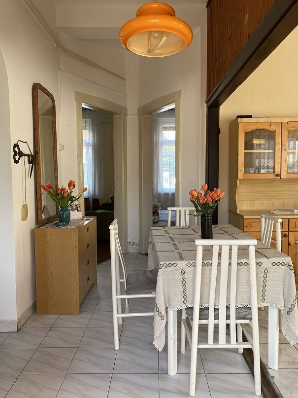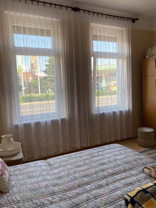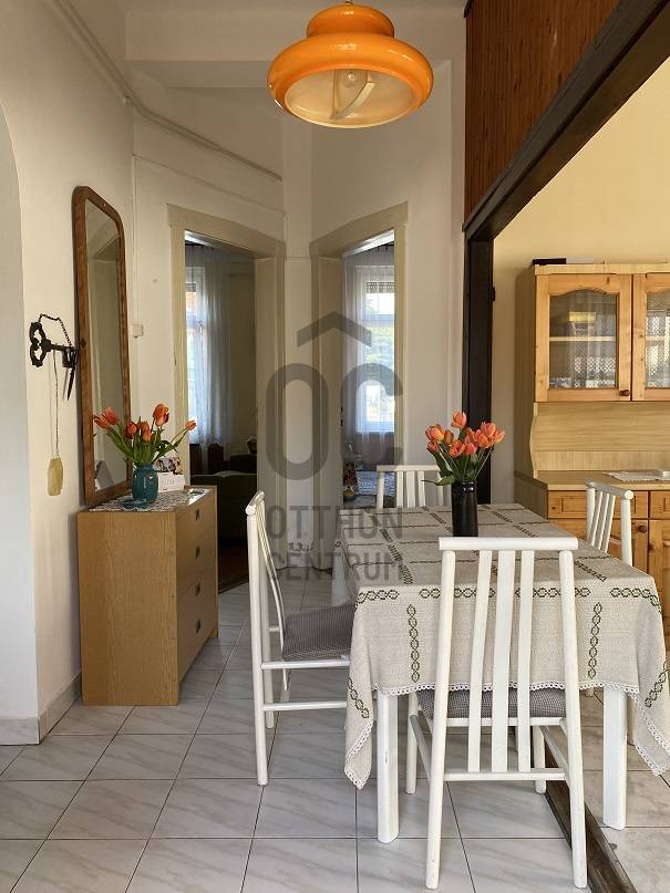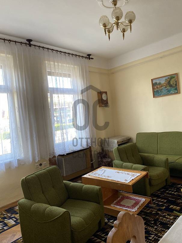 Pápán két lakásos ikerház eladó.Eladóvá vált Pápa frekventált helyén, 89 nm ikerház.Az ingatlan az Alsóváros közelében, a Belváros peremén helyezkedik el.Pár perc sétára a környéken megtalálható, kereskedelmi egységek, iskola, óvoda, gyógyszertár, orvosi rendelő, és különböző szolgáltatások.Központi elhelyezkedésének köszönhetően kiváló a közlekedési lehetőség akár személygépkocsival, vagy tömegközlekedéssel.A ház az 1920-as években épült téglából, vörösfenyő tetőszerkezettel, tetőhéjazata cserép.Két külön bejárattal rendelkező ikerház, mely egy 96 nm-es, és egy 89 nm-es lakásból áll, jelenleg osztatlan közös tulajdonban.A 89 nm-es házrészben az elmúlt időszakban jelentősebb felújítás nem történt, viszont kicserélésre kerültek az ablakok műanyagra, kívülről fa hatásúak.2012-ben pedig felújításra került a tetőszerkezet, és a kémények.A lakás elosztását tekintve három szobából, nappaliból, konyhából, fürdőszobából, WC-ből, kamrából és közlekedőből áll.A másik lakás teljes felújításon esett át.Fűtésről gázkonvektorok gondoskodnak, és alternatív fűtésként egy cserépkályha. A meleg víz ellátást a gázbojler biztosítja.A ház egy része alápincézett, mely 35 nm, közös használatú.Az udvaron két garázs épült, valamint egy részén konyhakert került kialakításra, az egész osztatlan közös terület 454 nm.A két lakás elsősorban egyben eladó, vagy hasonló időpontban, a birtokba adás miatt.A berendezés külön megállapodás tárgyát képezi.Ajánlani tudom ezt a saroktelken lévő ingatlant elsősorban két generációs családoknak, vagy akár befektetési célra is kiváló, a két lakás mindegyike rendelkezik külön villany, és gázórával.Ha felkeltette érdeklődését az ingatlan várom megtisztelő hívását.