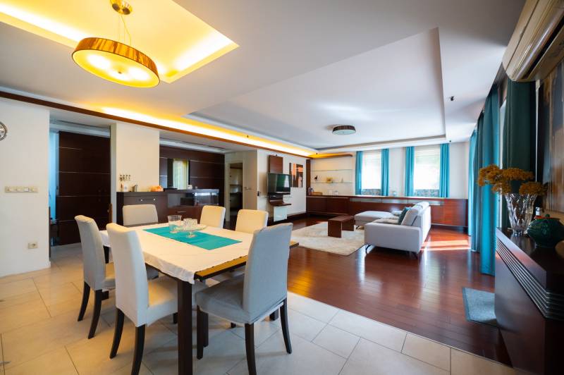 Eladásra kínálunk egy modern, 267 m²-es, háromszintes családi házat 780 m²-es telken, a zöldövezeti, csendes Adyliget szívében.Az ingatlanban 5 tágas szoba, 3 elegáns fürdőszoba, valamint egy dupla beállós garázs található. A belső terek igényes kivitelezésűek, különlegességük a sok üvegfelület és üvegkorlát, amelyek világossá és légies hangulatúvá varázsolják a házat.A praktikumra is gondoltak: rengeteg pakolófelület és egy hatalmas gardróbszoba áll rendelkezésre, így minden könnyedén rendszerezhető.A házhoz két nagyméretű terasz tartozik: az egyik közvetlenül a gondozott kertre nyílik, a másik az emeleten kapott helyet, ahonnan kellemes panoráma élvezhető. A kertben dísznövények, zöldfelületek és igényes kertépítés várják az új tulajdonost.Közlekedés:* A legközelebbi buszmegálló (63, 157, 157A, 963) kb. 5–7 perc sétával elérhető.* A Széll Kálmán tér (M2 metró, villamos, buszcsomópont) tömegközlekedéssel kb. **30–40 perc alatt** megközelíthető.* Autóval a belváros irányába gyorsan kijutunk a Budakeszi útra, illetve az M0 autóút is könnyen elérhető.Ez az ingatlan ideális választás azoknak, akik prémium minőségű otthont keresnek, természetközeli, nyugodt környezetben – mindezt Budapest közvetlen közelségében.TOVÁBBI RÉSZLETEKÉRT, MEGTEKINTÉS MIATT KERESSEN AKÁR HÉTVÉGÉN IS.