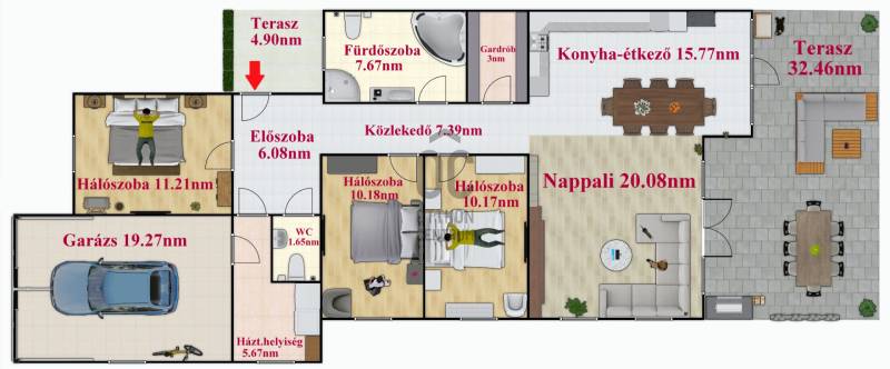 Eladó Szadán, a méltán kedvelt Aranyhegyen egy 4 szobás, 954nm-es telekkel rendelkező új építésű ikerház!Impozáns könyéken, meseszép örök panorámás és csak arra vár, hogy a tiéd lehessen.Főbb tulajdonságai:+ Egy szintes ikerház, ahol mindössze egy falon érintkezik a két lakótér, ami duplán téglázott. + Belülről szinteltolásos és nettó 99nm-es a lakótér, hozzá 32nm-es terasz és egy 19nm garázs.+ Az egész ház és válaszfalak mind 30-as téglából épültek és lesznek szigetelve. A fűtésről és hűtésről modern geotermikus fűtésrendszer gondoskodik.+ Igazán jó elosztású, mivel 3 hálószobás és egy hatalmas amerikai konyhás-nappali lett kialakítva.+ Ablakos fürdőszoba mosdóval és külön wc-vel lett tervezve, hozzá 1 db háztartási helyiség és külön gardrób.+ Mindkét lakrészhez külön bejáratú lesz és tartozik hozzá 954nm telek is.+ Jelenleg szerkezetkész állapotú, befejezés 3-5 hónap. Burkolatok, ajtók, szaniterek választhatók.+ Jogilag rendezett, tehermentes és akár CSOK és hitel is felvehető rá.+ A kivitelező leinformálható, a környéken referencia házak megtekinthetők bármikor.+ Tömegközlekedés a háztól 11 perc sétára található, ahol távolsági buszok és a Szadai Székely Bertalan úti vonat megálló található.+ Az utca épp terep rendezés alatt áll, a betonozása még idén befejeződik.Külön és egyben is eladó, ha egész családoddal költöznétek össze! További extrák beszerelése megbeszélhető, mivel a kivitelező teljes csapattal rendelkezik.Ha olyan ikerházat keresel, ami teljesen új, modern kornak megfelel és remek környéken találod, akkor ezt a házat épp neked építik!