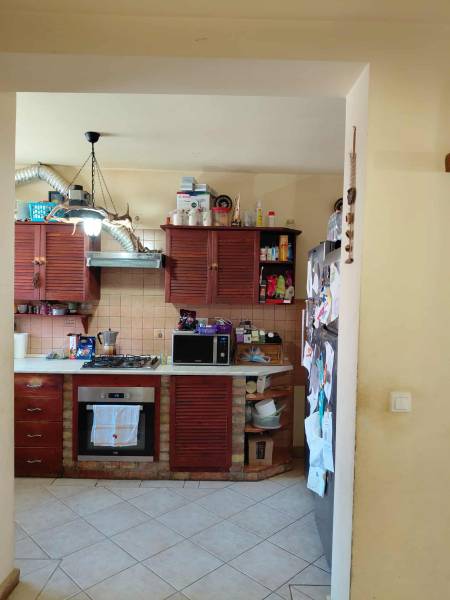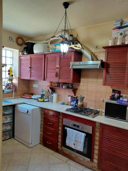 Pilisvörösváron, csendes, méltán igen népszerű részén eladó egy felújított ikerházfél.Csendes, mégis könnyen megközelíthető részen kínálunk eladásra egy kiváló adottságokkal rendelkező ikerházat. Az 584 m²-es telek több lehetőséget kínál: kertészkedés, kikapcsolódás vagy akár vállalkozás.A ház masszív, 30-as téglából épült (1978), majd 2008-ban teljes felújításon esett át. 15 cm-es hőszigetelést kapott, valamint műanyag, hőszigetelt nyílászárók is beépítésre kerültek. A fűtést vegyestüzelésű kazán biztosítja, de a gáz is telken belül elérhető.Helyiségek elosztása:-földszint (85 m²): nappali, szoba, konyha-étkező, előszoba, kamra, kazánhelyiség, fürdő + WC-emelet (70 m²): három nagy hálószoba, gardrób, valamint egy tágas fürdőszoba, amely elő van készítve, így saját elképzelés szerint fejezhető be.A közművek közül víz, villany, csatorna bekötve, a gáz telken belül található meg.Extrák:-kb. 60 m²-es melléképület – műhelynek, tárolónak is ideális-autószerelő akna-ásott kút – öntözéshez tökéletesElhelyezkedés:-vasútállomás: gyalogosan kb. 10 perc-buszmegálló: 3 perc sétárabevásárlási lehetőségek, iskolák, óvodák: könnyen elérhetők-gimnázium: szintén a közelben található.Ez az ingatlan többgenerációs családi otthonként, vállalkozás helyszíneként is remek választás.Tágas terek, jó elosztás, számtalan lehetőség – csak a fantázia szab határt! Ez az ingatlan ideális választás mindazok számára, akik nyugodt, kertvárosias környezetben keresnek otthont.A hátsó ikerházfélhez szorgalmi útat kell bíztosítani.Ha további kérdése lenne vagy megtekintené az ingatlant, kérem keressen bizalommal hétvégén is! :)Lengyel Katalin06/20 251 5791