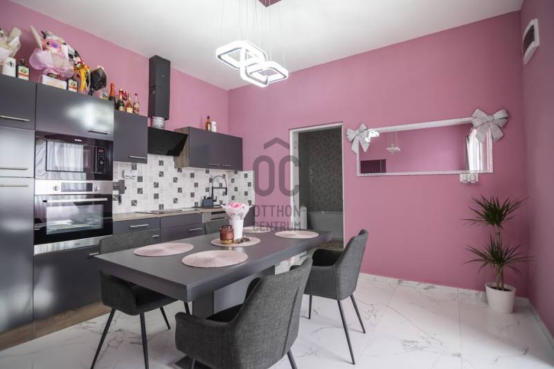 Fedezd fel ezt a lenyűgöző, frissen felújított házat Pesterzsébet szívében, ahol a modern életérzés és a csendes környék tökéletes harmóniában találkozik!A vételár tartalmazza a teljes bútorzatot igény esetén!Ez a 66 négyzetméteres, három szobás ingatlan ideális választás fiataloknak, idősekenek, családoknak egyaránt akik saját otthont keresnek vagy befektetési lehetőséget fontolgatnak.A ház kiváló állapotban várja új lakóit, és az amerikai konyhás, tágas nappali nemcsak a mindennapi élet kényelmét biztosítja, hanem a baráti összejövetelek tökéletes helyszínéül is szolgál. A ház betonfödémes így akár felfelé bővíthető!A 556 négyzetméteres telek rengeteg lehetőséget rejt magában, legyen szó kerti tárolóról vagy a saját zöld oázisod kialakításáról, vagy akár megosztásról, mert még egy ingatlan építhető a telekre! A ház világos és modern dizájnja mellett az akadálymentesített kialakítás is hozzájárul ahhoz, hogy mindenki számára ideális választás legyen.A gázkonvektoros fűtés és a klímaberendezés biztosítja a kényelmet minden évszakban, így nem kell aggódnod a hőmérsékletváltozások miatt. A környék kitűnő közlekedési lehetőségekkel büszkélkedhet, így a város többi része könnyedén megközelíthető. A közeli buszmegállók és villamosvonalak révén a napi ingázás problémamentes, és a város nyüzsgésétől távol, mégis közel élvezheted a csendes környezetet. Pesterzsébet számos lehetőséget kínál a szabadidős tevékenységekre is, legyen szó parkokról, sportpályákról vagy helyi boltokról, ahol mindent megtalálsz, amire szükséged lehet. Ez az ingatlan nem csupán egy ház, hanem egy lehetőség, hogy egy olyan otthonra lelj, amely tökéletesen illik az életstílusodhoz.Ha bármilyen kérdésed van, vagy szeretnéd megtekinteni ezt a csodás ingatlant, bátran keresd meg a részletekkel kapcsolatban. Ne hagyd ki ezt a remek lehetőséget, hogy a saját otthonodban élvezhesd a modern élet előnyeit egy csendes, barátságos környéken!Ez az ingatlan a \"Felező csomag\" megbízási portfólióhoz tartozik. Részletek az Otthon Centrum weboldalán.
