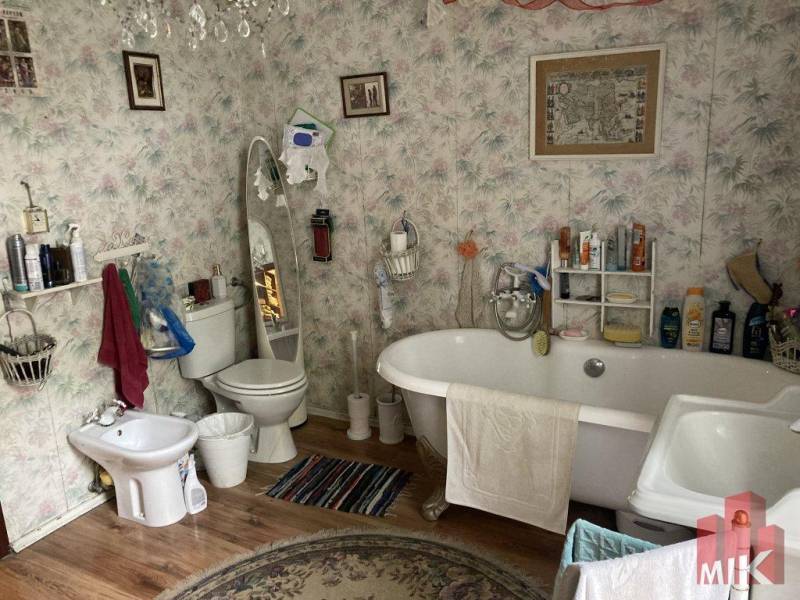 Csendes utca gyér forgalommal, körbejárható családi ház, nagy terasz elöl és hátul is, nagy kert rengeteg fával és cserjével, privát élettérrel, külön épület az autóknak, irodának, rendelőnek.Eladásra kínáljuk ezt az Érdligeti, 1.636 m2-es telken elhelyezkedő 126 m2-es francia stílusú családi házat, amely egy enyhén emelkedő, hosszú telek végére épült, kellemes távolságra az utcafronttól, így a külső szemlélők elől rejtve marad, köszönhetően a nagyszerű tájolásnak, a körbeölelő, eltakaró természetnek.Bejárat az első nagy teraszról. Nagy középső tér a nappali-étkezőnek, közlekedőnek. Konyha és kamra, mosdó, mosókonyha, dolgozószoba az egyik oldalon, fürdő, két háló és közöttük nagy gardrób a másik oldalon. Kétoldalt is, középen is kijárat a kívülről sehonnan sem látható hátsó teraszra.Bár a konyha és a fürdőszoba nem felel meg a mai divatnak és a modern elvárásoknak, egy ötletes tervezés, szakszerű felújítás után is megőrizheti francia eleganciáját és báját. Fa szerkezetű tető és mennyezet, frissen, cserepeslemezzel felújított tetőfedés.Korszerű, bukó-nyíló ajtók, ablakok fa spalettával. Tágas, világos terek, dél-délkeleti tájolás.A külső, főfalakra támaszkodó födém miatt a válaszfalaknak nincs tartó szerepük, ezért a belső terek akár könnyen át is alakíthatóak. Egyszerű módosítással (ld. alaprajz) 4 hálószobás amerikai konyhás családi házat kapunk.A telek alsó, utcafronti felén levő hosszúkás téglalap alakú, 65 m2-es épület dupla garázsbeállóval rendelkezik, mellette előtér, fürdőszoba (WC-vel, zuhanyzóval) és egy szoba található. Az épületnek saját cirkó biztosítja a fűtését, melegvíz ellátást.Az érdi ingatlanpiaci környezetben vizsgálva, a méreteket és lehetőségeket számba véve ennek az ingatlannak, a két épület együttes méretét számítva, a telek nagyságát is figyelembe véve, a forgalmi értéke 156 Millió Ft körül várható. A felújítási és javítási igények figyelembe vételével került megállapításra a jelenlegi kínálati ára, amely 126 Millió Ft.Ha egy tágas, világos, szép otthont szeretne, mely hű a polgári értékekhez, és amelyet öröm belakni, benne a nyugalmat megtalálni, akkor ez az a ház, ami mindezeknek megfelel! Jöjjön, nézze meg!(Az ingatlanra terhelt bankkölcsön miatt elsősorban készpénzes vásárlókat várunk.)MIK azonosító: 3685808