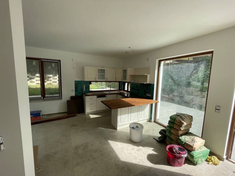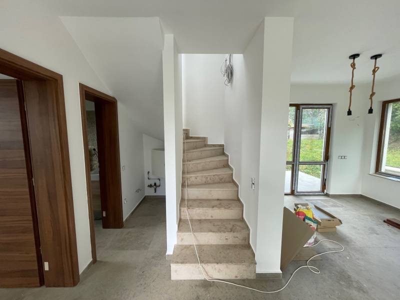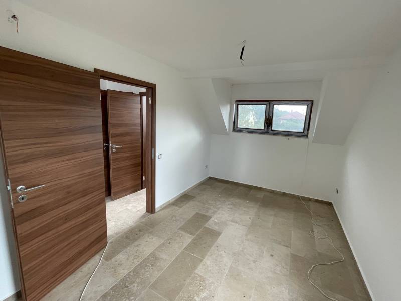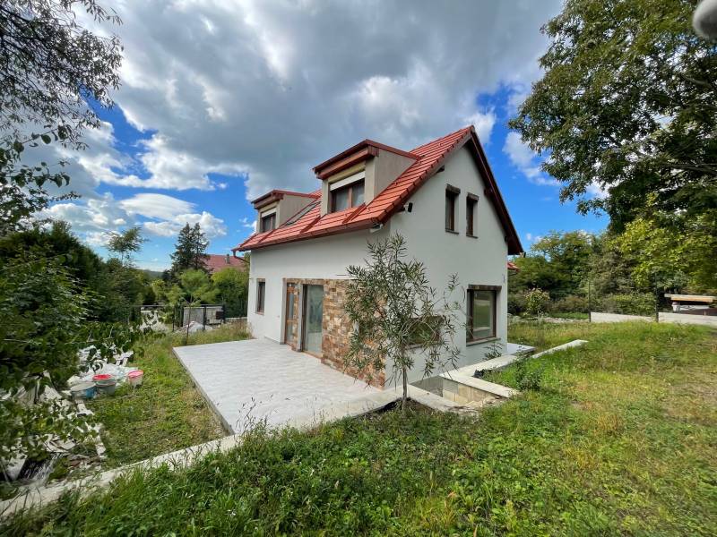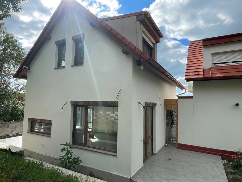 TIHANYBAN ÚJ ÉPÍTÉSŰ IKERHÁZFÉL - NYARALÓ ELADÓTihany Gödrös település részén kínáljuk eladásra ezt az új építésű, 104 m2 alapterületű, belső két szintes ikerházat, 250 m2-es saját használatú kertrésszel és autóbeállóval, amely a 100 m2-es közös területen kerül kialakításra.A 720 m2-es teljes telek területen két, egymástól jól elkülönített ház áll, amelynek nincs közös fala, a két épületet egy kis tárolóhelyiség köti össze. A két épület 6,00 x 8,96 m befoglaló alapterületű, egymástól tartószerkezetileg független, földszintes+ tetőteres, magas tetős, kétegységes üdülőépület, amely két család számára megfelelő térkapcsolatokkal rendelkezik. Helyiségei: a földszinten amerikai konyhás nappali, melyhez egy 21 m2-es és egy 12 m2-es terasz kapcsolódik, egy hálószoba, egy zuhanyzós fürdőszoba + WC, az emeleten pedig 1+2 hálószoba, háztartási helyiség és egy WC található.Az emeleti ablakból a Balaton víztükre is megcsillan a távolban.A jelenlegi készültség lehetővé teszi új tulajdonosa számára, hogy rövid időn belül használatba tudja venni az ingatlant. Műszaki tartalom: - fűtése: elektromos padlófűtés, a melegvíz ellátást elektromos bojler biztosítja - falazat: Porotherm Klíma 30 cm vtg. égetett kerámia N+F téglafalazat (monolit vasbeton lemezfödém) - tetőszerkezet: 42 fokos fa szerkezetű nyeregtető, Creaton Domino kerámia tetőcserép fedéssel -nyílászárók: műanyag szerkezetű, fa erezetes, barna színű homlokzati nyílászárók kerülnek beépítésre, 3 rétegű hőszigetelő üvegezéssel - klíma kiállások és a napelem előkészítése az új tulajdonos rendelkezésére állElhelyezkedése: a gödrösi szabadstrand 1 km-re, rövid sétával elérhető, buszmegálló 1,3 km, faluközpont, Apátság 1,8 km távolságra.Az ingatlan adásvételekor budapesti lakás beszámítása lehetséges.Tihany Magyarország egyik legszebb fekvésű települése, látványos táji és természeti adottságokban bővelkedő község a Balatonba nyúló Tihanyi-félszigeten. Nemcsak a táj szépsége, de a falu varázslatos hangulata és történelmi emlékei is vonzóvá teszik Tihanyt a turisták számára. Építész- és ingatlanközvetítő irodánk minden hiteles szakmai segítséget meg tud adni, mellyel segíteni tudjuk döntését.Kérje az ingatlan részletes tájékoztató anyagát!Kövesse Balatoniingatlanguru facebook és balatoni_ingatlanguru instagram oldalunkat.Balatoni ingatlanguru – több mint közvetítő