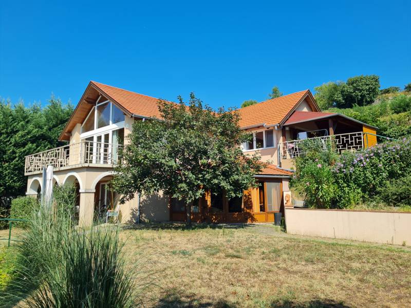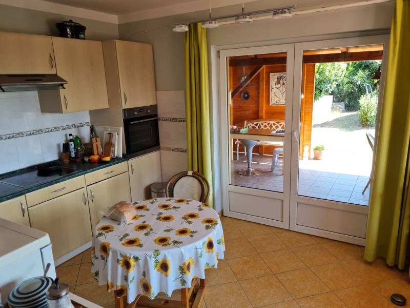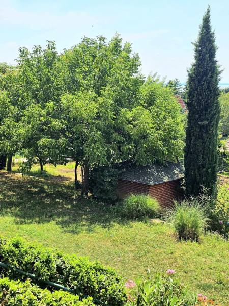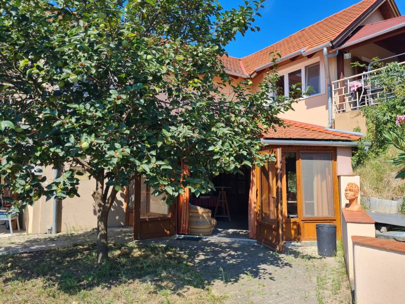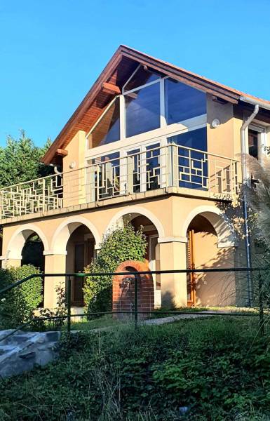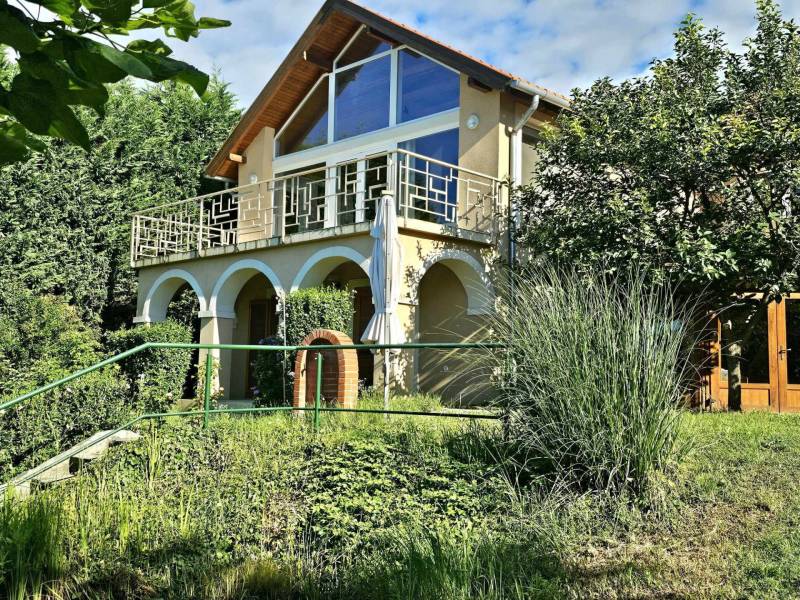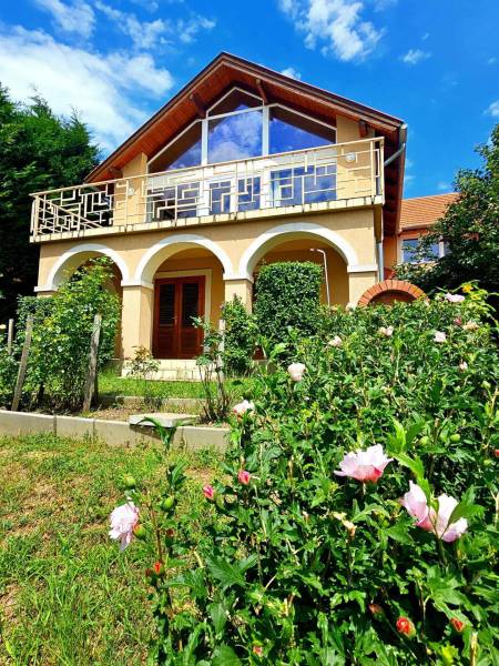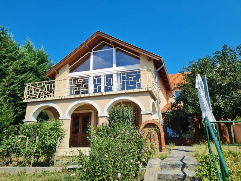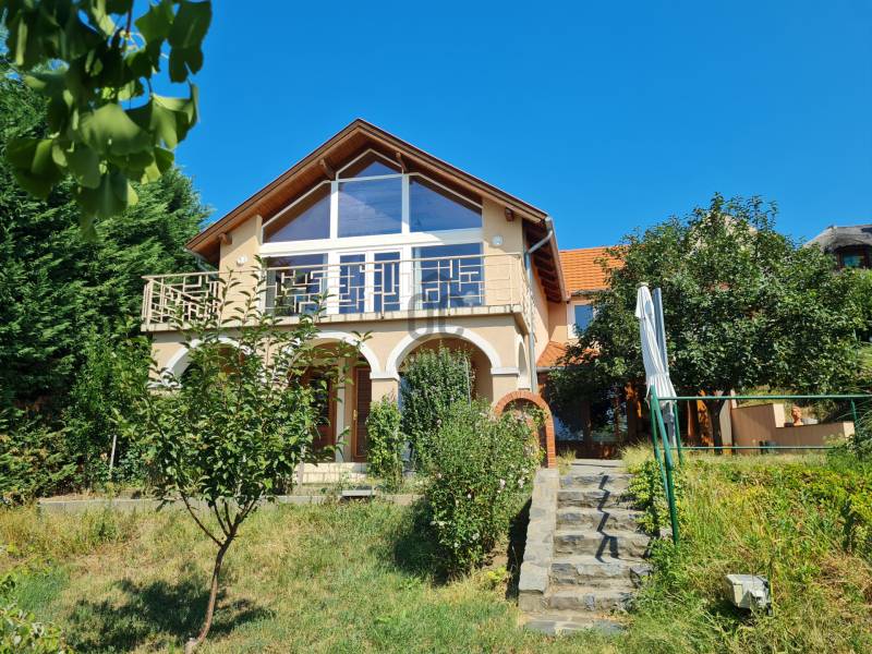 Badacsonyban vált eladóvá ez a különleges atmoszférával rendelkező épület, mely egyedi kialakításával egyből kitűnik az őt körülölelő ingatlanok közül. A területről és a ház egészéből meseszép a panoráma a Balaton vizére, de ha ez nem lenne elég, a Badacsony is ott magasodik az épület mögött.A belterületi, 1519 négyzetméteres telken a jelenlegi tulajdonos tervei és álmai alapján készült el 2005-ben a hétvégi házként bejegyzett ingatlan – mely családi otthonnak is kitűnő választás lehet -. Az épület alapjául egy már meglévő bazaltkő pince szolgált, ez került átépítésre és bővítésre korszerű anyagok felhasználásával.A ház két szinten összesen 166 négyzetméternyi hasznos alapterülettel rendelkezik.A földszinten kialakított helyiségeket az előtérből közelíthetjük meg. Itt található egy 27 négyzetméteres, parasztfödémes, meghitt hálószoba, mely közvetlen kertkapcsolattal rendelkezik és akár két különálló hálóvá osztható. Mellette kapott helyet a lépcsőház, egy fürdőszoba, tároló, pince és egy műterem.Az emeleten lévő helyiségek közül a teljes üvegfelülettel ellátott nappali/műterem és a hozzá tartozó terasz olyan egyedi és megismételhetetlen hangulatot áraszt, hogy itt egyből az az érzése az embernek, hazaért...Ezt a nappali részt egészíti ki még egy közlekedő, hálószoba, fürdőszoba, konyha és étkező, valamint egy loggia is.Az épület mindkét szintjén beépítésre került egy-egy fatüzelésű kályha, így hűvösebb időszakban ezek szolgáltatják a meleget.A kert teljesen körbekerített, több autó egyidejű parkolása is megoldható telken belül.Az udvar teraszos kialakítású, akár egy medence, gyermek játszó vagy nyári konyha kiépítésére is bőven van még hely.Az épület melletti részen egy fedett, hangulatos kerti kiülő is helyet kapott, a kert alsó részén pedig egy téglából épült tárolót is építettek.A ház egész évben aszfaltos úton könnyen megközelíthető, a Balaton partjától gyalogosan 15 percre, a központtól 2 perces autóútra van.Ajánlom az ingatlant mindazok figyelmébe, akik a “béke szigetét” keresik távol a világ zajától. Az épület állandó lakhatásra és nyaralónak is egyaránt tökéletes választás lehet!Amennyiben kérdése merülne fel az épülettel kapcsolatban, vagy szeretné azt megtekinteni, kérem keressen megadott elérhetőségeim egyikén!