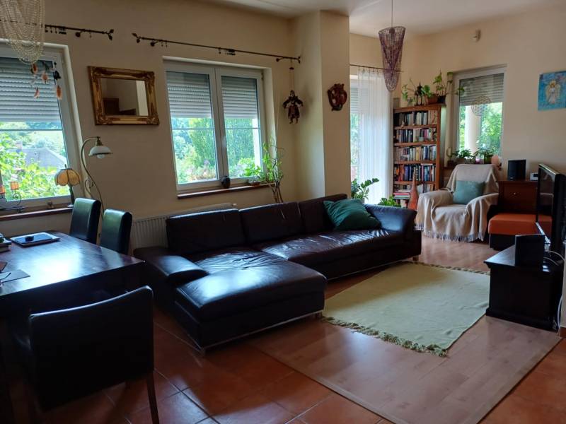 Csodálatos kert, egyedi stílus a Pilis szívében!Eladó Pilisvörösvártól nem messze, Piliscsaba Garancsligeti részén, nyugodt környezetben található egy 1119 m²-es, gyönyörű kerttel rendelkező, kétszintes családi ház.Az ingatlan 2008-ban épült, 38-as téglafalazattal és külső, 15 cm vastag hőszigeteléssel.Belső kialakítása egyedi:-felső szinten (95 nm): előtér, 3 szoba, fürdőszoba, WC, gardrób rész, egy kis szintkülönbséggel tágas nappali+konyha+étkező teraszkapcsolattal és egy télikerttel, lépcsőlejáró az alsó szintre-szuterénszinten: fűthető garázs, szauna zuhanyzóval, mosdóval, fedett kocsibeálló.A fűtés gázkazánnal működik, hidegburkolatos részeken padlófűtéssel.Az utcafronti- és garázskapu elektromos.Az egész telek telis-tele van gyönyörű növényekkel (gyertyán, galagonya, ringló, tiszafa, hársfa, ginkgo, füge, cseresznye-, meggyfa, vérszilva, színes virágok, stb. :)). Még gyógynövényes rész is helyett kapott a kertben. Hangulatos kis kiülős részek vannak az érett növényzet között. :)Ez a ház és kert egy igazi csoda, ha szereti a különleges hangulatot! :)Budapest kb. 40 perc vonattal.A közelben számos kirándulási lehetőség.Ha további kérdése lenne vagy megtekintené az ingatlant, kérem hívjon!Őri Klaudia 20/253-2522