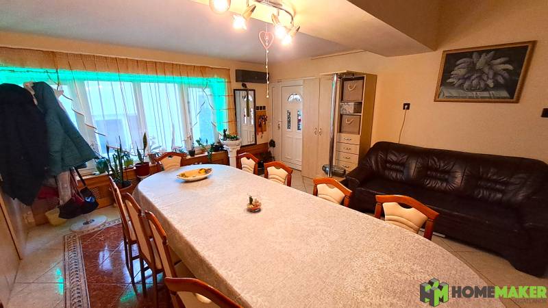 ÖSSZEKÖLTÖZNI? VÁLLALKOZNI? ITT MINDENT LEHET!!!!!Szőregen, Újvilág utcánál kínáljuk eladásra ezt az öt szobás, 150 nm-es dupla komfortos, kétgenerációs családi házat 2 garázzsal és vállalkozásra alkalmas épületegyüttessel.A felépítmények összterülete meghaladja a 300 négyzetmétert, lakóingatlanként van nyilvántartva.A „bombabiztos” kivitelezéssel dupla, – blokk + tégla – fallal megépített ház tökéletes statikai és műszaki állapotú.Betonozott, állómagasságú pince van a lakóház alatt, nagy teljesítményű központi gázkazánnal és az épületgépészeti vezetékekkel.A földszinten két tágas utcai szoba, impozáns méretű étkező, konyha, kamra, fürdőszoba és szeparált WC kapott helyet.A tetőtérben három szoba és kádas fürdőszoba lett kialakítva, udvarra néző erkély.A földszinten az évek során minden megújult:-nyílászárók cserélve-padlófűtés, szobákban új radiátorok-ízléses konyhabútor, beépített háztartási gépekkel-új burkolatok-modern, zuhanykabinos fürdőszoba + külön WCAkadnak a házban a felső szinten felújításra szoruló részek, de minden működik és egy tisztasági festés után azonnal beköltözhető.A sok, különböző tevékenységre alkalmas helyiségből álló udvari épület központi része a 70 nm-es, padlófűtéses üzlethelyiség a kiszolgáló raktárral, hűtőkamrával, öltözővel, szociális helyiséggel.Kis ráfordítással lakássá alakítható.A földszintes épületek padlástere is hasznosítható.Két utcai bejáratú garázzsal egészül ki ez a rengeteg lehetőséget biztosító nem mindennapi ingatlan.Tekintse meg irodánk teljes kínálatát a www.homemaker.hu oldalon!
