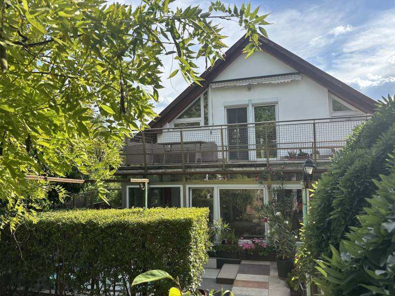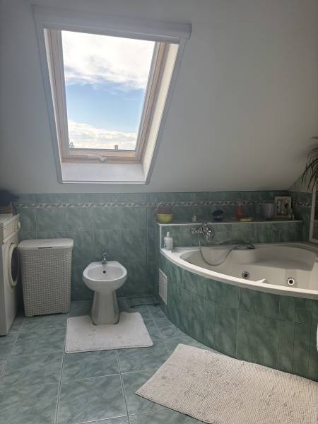 Eladó 3. kerületben az Ürömhegynél kétgenerációs Családi ház.Különösen nagy, 1920 nm-es, enyhén emelkedő telken található, ami csodálatos kilátást biztosít már a ház alsó szintjéről is, az emeletről pedig panorámás kilátása nyílik a szemközti Harsánylejtőre. Déli fekvésének köszönhetően gyönyörű napfényes, világos.A telken egy 220 nm területű, 2 szintes, 2 generációs (két külön lakrésszel rendelkező) ház, egy fedett gépkocsibeálló és a telek végében egy önálló kisház áll. A két generációs ház alsó szintje épült korábban, itt egy garázst és egy légó pincét is találunk, a fentebbi szinten egy 65 nm-es önálló lakrész kapott helyet (2 szoba - étkező -konyha - kamra + terasz elrendezéssel), és ugyanezen a szinten található a nagyobbik lakrész alsó része is (előszoba - WC - konyha+étkező elrendezéssel), valamint egy télikert és egy hátsó terasz.Az emeleten egy közösségi térből nyílik a sarokkádas fürdőszoba és egy külön mellékhelyiség, illetve három külön szoba, a legnagyobb az erkélyes nappali panorámás kilátással.A ház jelen állapotában közepes állapotú , a fenntartási költsége méretéhez képest nagyon kedvező, rezsije kifejezetten alacsony. Jövőbeli tulajdonosa számára a ház jelenlegi állapotában is használható, de egy teljes felújítással hatalmas, modern otthon varázsolható belőle. Méretének és elrendezésének köszönhetően tökéletes több generáció összeköltözésére.A telek nagy méretének köszönhetően alkalmas ikerház építésére is, így befektetők figyelmébe is ajánlom.Ha valaki irodát vagy vállalkozását szeretné otthonával egy fedél alá hozni, ezt itt tökéletesen megvalósíthatja, mert a kerítésen belül több gépkocsi beállására is van lehetőség, valamint a kerítés előtt egy vendégparkoló is kialakításra került.