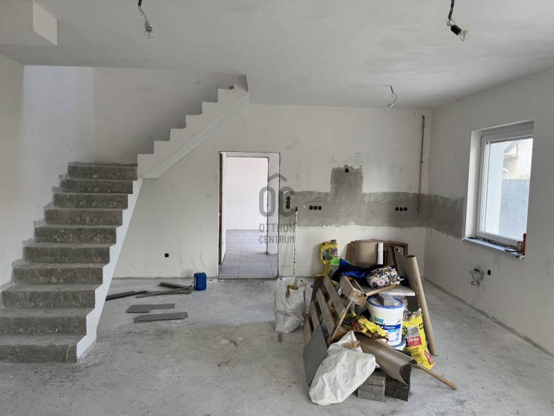 ÚJ ÉPÍTÉSŰ IKERHÁZ RÁCKEVÉN – MODERN KIALAKÍTÁS, TÁGAS TELEK, CSENDES KÖRNYÉK! Helyszín: 2300 Ráckeve Telek területe: 1236 m² Lakások alapterülete: kb. 102 m² / lakás Saját garázs és fedett terasz mindkét lakáshozAz ingatlanrólEladásra kínálunk egy új építésű, kétlakásos (ikerház jellegű) családi házat Ráckeve egyik csendes, nyugodt, falusias hangulatú utcájában.A ház földszintes + tetőtér beépítéses, modern elrendezésű, energiatakarékos és korszerű anyagokból épül.Mindkét lakás külön bejárattal, saját garázzsal, fedett terasszal és nagy kerttel rendelkezik, így tökéletes választás családoknak vagy befektetőknek is. Műszaki tartalomFalazat: 30 cm Porotherm tégla + 15 cm hőszigetelésTető: fa szerkezet, 45° hajlásszögű, antracitszürke betoncserépHomlokzat: törtfehér és középszürke dörzsölt nemesvakolatNyílászárók: 3 rétegű hőszigetelt műanyag ablakokFűtés: gázkazános központi fűtés + napelemes kiegészítő rendszerPadlóburkolatok: kerámialap és laminált parkettaZöldfelület arány: 73%A ház energiatakarékos, korszerű hő- és hangszigeteléssel épül, a tervezett épületmagasság mindössze 3,65 m, így harmonikusan illeszkedik a környezetbe. KörnyezetAz ingatlan Ráckeve belterületén, csendes, murvás mellékutcában található, falusias lakóövezetben.A telek hosszúkás, jól tájolt (D–É-i) és kiváló adottságú.A környék csendes, családias, mégis könnyen megközelíthető.A közművek (víz, villany) az utcában, csatorna előkészítve.Az ingatlan értékesítésre épül, így az új tulajdonos kulcsrakész állapotban veheti át a házat.A telek és az ikerház egyben vagy külön is megvásárolható (megbeszélés szerint).