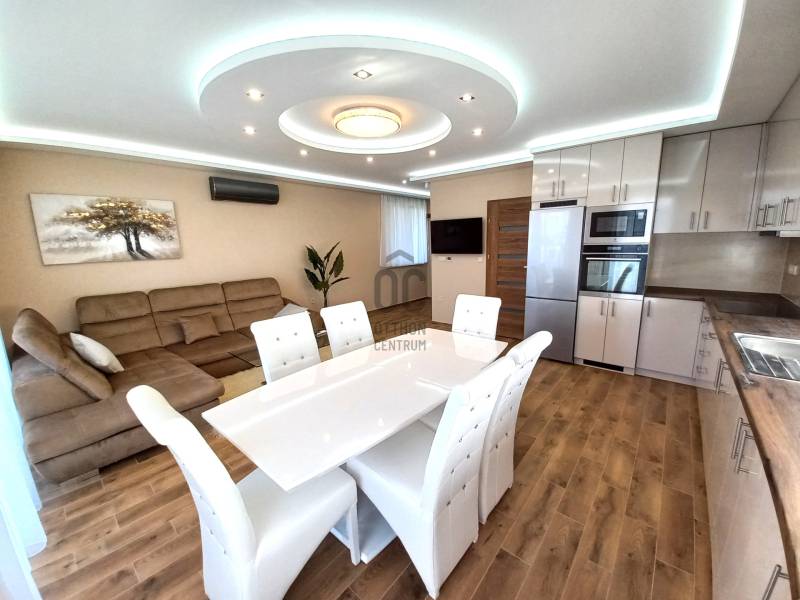 Debrecenben a Nagyerdő mellett a Nyulas városrészén, új építésű lakóparkban, újonnan épült, társasház nappali+ 3 hálószobás Penthouse lakása kiadó.Minőségi kivételezés mellett nagy hangsúly kerül az esztétikus megjelenésre is.Társasház paraméterei:- frekventált elhelyezkedés, elegáns környezet- lifttel rendelkezik,- 6 lakásos kis lakóközösség- teremgarázs az alsó szinten- közös társasházi kert kerül kialakításra- fűthető gépkocsi felhajtóA lakás paraméterei:- igazi luxus életérzés, egyedüli lakás a 2. emeleten, ezért Ön élvezheti otthonában a közvetlen lift kapcsolatot, melyet csak a jogosutak használhatnak- 98 nm hasznos alapterülethez tartozik 9 nm fedett terasz és 104 nm - s panorámás tetőterasz- terasszal közvetlen kapcsolatos, tágas világos nappali étkezővel és konyhával- 3 hálószoba melyből egy saját fürdőszobával rendelkezik, kettő pedig közvetlen kijárattal a teraszra- külön fürdőszoba káddal, zuhanyzóval- magas minőségű, hidegburkolatok a lakás minden részén- 3 rétegű hőszigetelt műanyag nyílászárók, melyek motoros alumínium redőnnyel és rovarhálóval lettek ellátva- padló fűtés az egész lakásban mely gázkazánról üzemel,- hűtés és kiegészítő fűtési lehetőséget a 4 db GREE hűtő-fűtő klíma melyhez H- tarifa tartozik- modern megoldások a mennyezeti világítás kialakításánál- telefonról is vezérelhető motoros alumínium redőnyök- a terasz száraz burkolattal ellátott, kiváló vízelvezetési megoldás.Ugye máris birtokba venné, ne habozzon hívjon és nézze meg személyesen!Szerződéskötéshez: 2 havi kaució és egy havi lakbér szükséges.Debrecen, Kiadó, Luxus, penthouse, terasz, erkély, lakás, bútor, új, prémium,