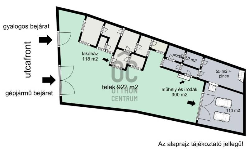 CSALÁDI HÁZ - IKERHÁZ - TÁRSASHÁZ - VÁLLALKOZÁSI TELEPHELYEladó egy különleges adottságú, több mint 400 m² összterületű ingatlan Soroksár egyik csendes, rendezett utcájában, megbízható szomszédságban.A tágas, értékes telek és a felújítandó épületek páratlan lehetőséget kínálnak befektetőknek, vállalkozóknak vagy építkezőknek, akik saját elképzelésük szerint szeretnék megvalósítani álmaikat.Ingatlan főbb jellemzői:Teljesen felújítandó főépület – szabadon alakítható kialakításJelenleg két különálló téglaépület:- 118 m2 lakóépület~300 m² autószerelő műhely (két szerelőaknával), irodák, raktárak +100 m² pinceMegnevezés: kivett lakóház, udvarMéret: 922 m²Besorolás: Lke-1-XXIII-2/2Közművek: telken belül - villany (3x16A és 3x20A) és gáz bekötve, csatorna a telkenBeépíthetőségi paraméterek:Beépítési mód: szabadonálló Max. beépíthetőség: 35 %Építménymagasság: 5 mSzintterületi mutató: 1,05 m²/m²Zöldfelület minimum: 55 %Parkoló: 0,2 %Építhető:- családi ház- ikerház- társasház (4 lakóegység)- üzlethelyiség - bemutatóterem- kereskedelmi egység- telephelyTökéletes választás azok számára, akik értéket és lehetőséget keresnek egy helyen!Amennyiben felkeltette érdeklődését, keressen bizalommal!
