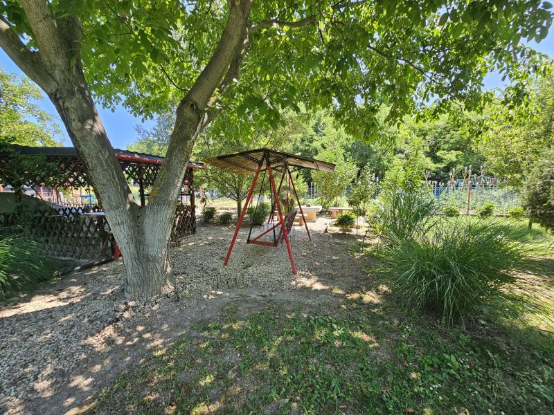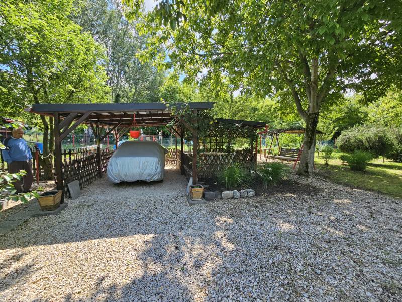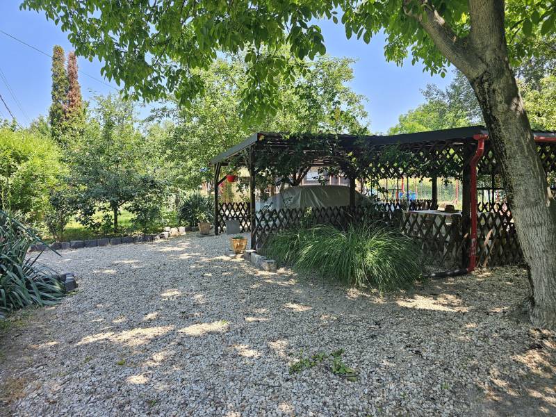 Képzeld el a napod így:Reggel kinyitod a faház ajtaját, beleszippantasz a friss levegőbe, és leülsz a kertbe a kávéddal. Körülötted gyümölcsfák, a madarak csicseregnek, te meg azon gondolkodsz, hogy inkább barackot vagy szilvát kapj le tízóraira. A ház maga egy 44 m²-es, kétszobás, tárolós kis kuckó, ami pont annyi, amennyit rendben lehet tartani anélkül, hogy rámenne a hétvégéd. A telek viszont 1126 m², körbekerítve, szépen karbantartva – vagyis van hely a grillnek, függőágynak, de akár egy kisebb focimeccsnek is. A praktikum is pipa: fúrt kút, hogy a virágok ne szomjan haljanak, és egy fedett kocsibeálló, ahol az autó árnyékban pihenhet, miközben te a kertben napozol. Dél körül lesétálsz a Dunához, ami csak 500 méter, szóval tényleg tíz perc flip-flopban, törölközővel a válladon. Ott egy gyors csobbanás, majd vissza a házhoz, ahol akár hűs árnyékban szundizhatsz a fák alatt. Ha épp bevásárolni támad kedved vagy beülnél egy fagyira, a központ mindössze 10 perc séta – nincs autózás, nincs dugó, csak egy laza séta. Este pedig jöhet a haveri sütögetés a kertben, a csillagos ég alatt. És a legjobb rész? A kert karbantartásához minden felszerelés itt marad, benne van az árban. Magyarul beköltözöl, és már az első nap olyan a vibe, mintha mindig is itt nyaraltál volna.Szóval ha szeretnél egy saját kis nyugalomszigetet a Duna közelében, ahol minden adott a lazuláshoz, akkor ez a hely neked szól.Ez a hirdetés az Otthon Centrum Árgaranciás csomagjának része, melyről bővebb információt a http://www.oc.hu/felezocsomag weboldalon találEz az ingatlan a \"Felező csomag\" megbízási portfólióhoz tartozik. Részletek az Otthon Centrum weboldalán.