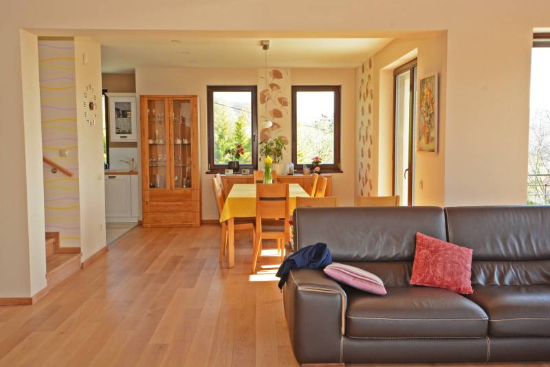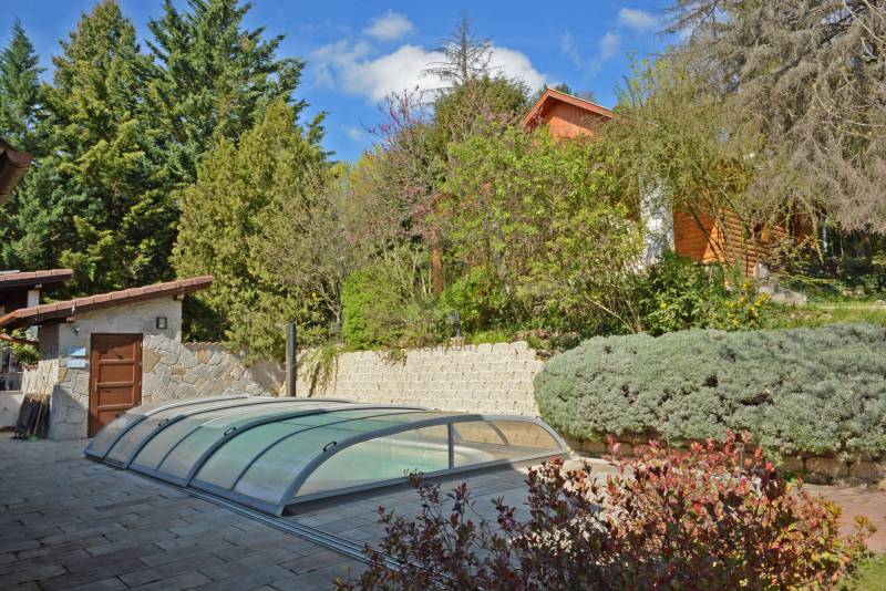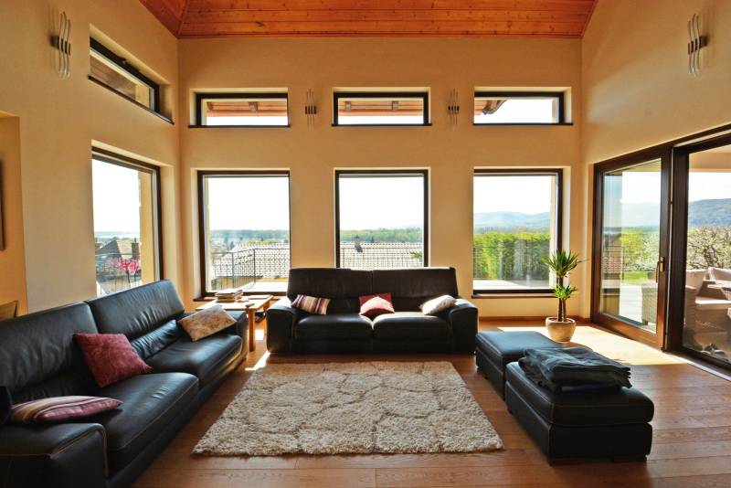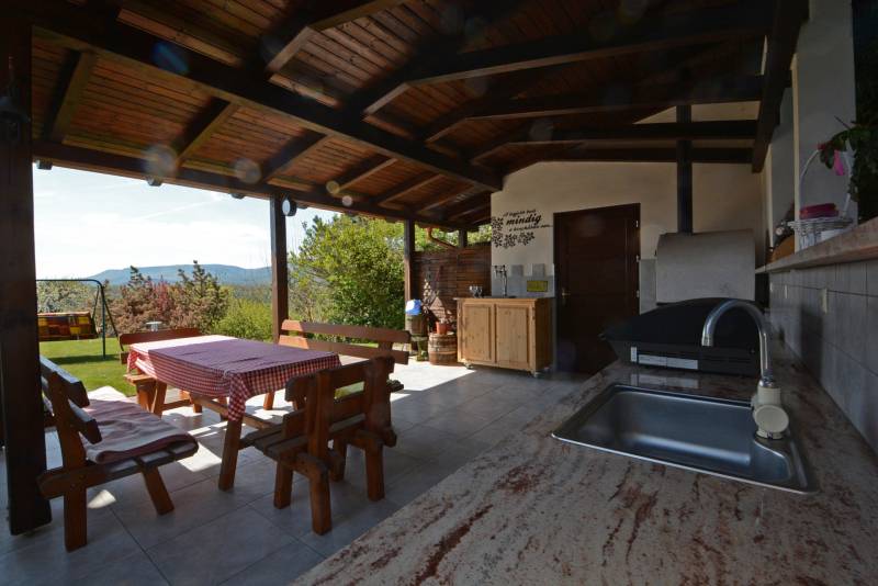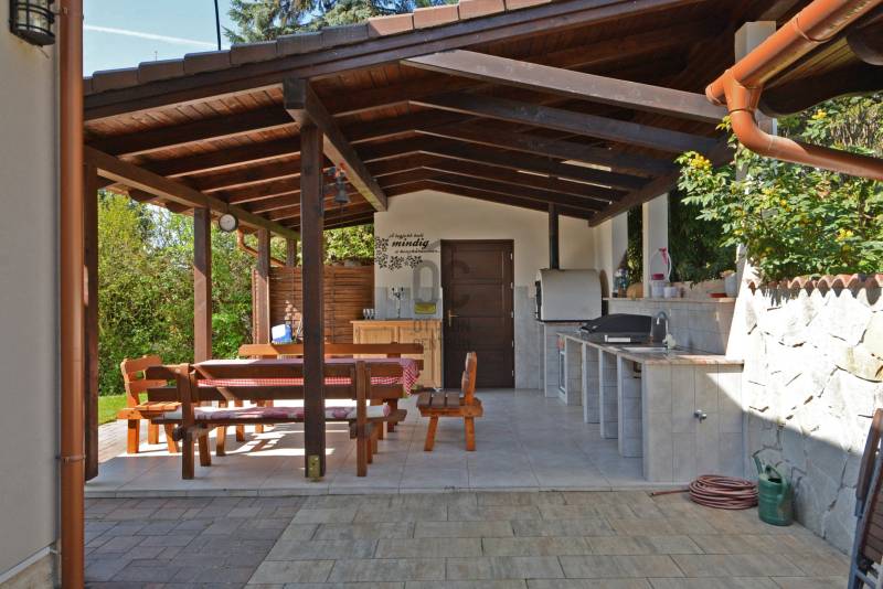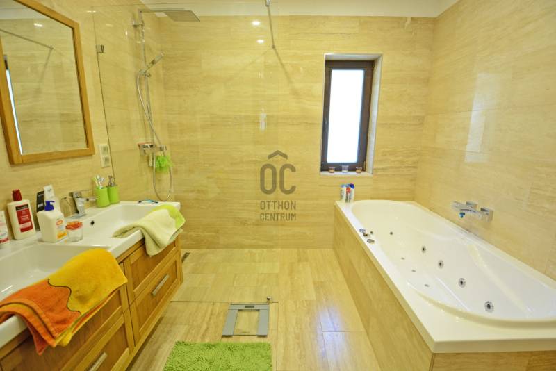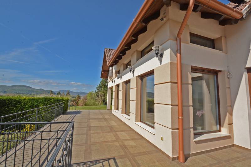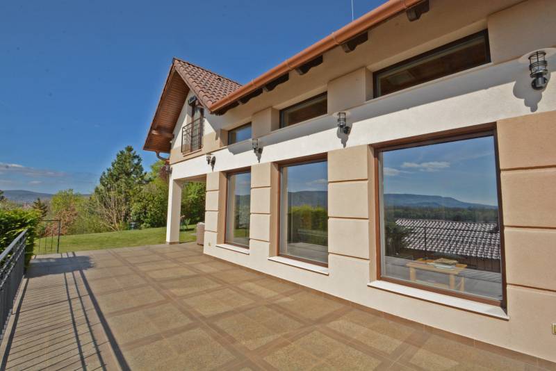 Alap adatok:- 1743 nm telekterület.- Két helyrajzi szám. ( 892+851 nm)- 2016-ban épült 3 szintes panorámás luxus családi ház, 4 lakószobával, panorámás nappalival,342 nm hasznos alapterülettel.- 60 nm-es panorámás terasz.- 4 autó részére garázs elektromos töltőfejekkel.- 6 autó részére gépkocsi beálló.- Fedett úszómedence, - 6 Kw szaldós napelem rendszer.- Hőszivattyús, elektromos, gáz és vegyes tüzelésű fűtés ki van alakítva és igény szerint kombinálható.- A világ legbarátságosabb full panorámás nyári konyhája tetővel, pultokkal raktárhelyiségekkel.- Elvehetetlen panoráma a Dunakanyarra- Egy 28 nm-es két szobás vendégház a másik helyrajzi számú telken.Verőce kis település a Duna bal partján 4160 lakossal. Budapest belvárosától a távolság 36 km légvonalban. 52 km közúton, mely gépkocsival kb. 1 óra. Vonattal Budapest Nyugati Pályaudvarról Verőce vasútállomásig Z70-es zónázó vonattal 31 perc.A telkek a település központjától 50 méterre, a vasútállomástól 200 méterre, a Duna partján lévő sétánytól 250 méterre, a kezdődő domboldalon helyezkednek el. Teraszos kialakítással különülnek el egymástól. Az alsó telek talajfeltöltésének köszönhetően mindkét ingatlan kertjéből örök panoráma nyílik a Dunakanyarra és a szemközti Pilis hegyvonulatára. Két telek, két helyrajzi szám, két utcai kapu, két külön közmű bekötés. Dologösszességben akarjuk értékesíteni a két telket.Az alsó telek 892 nm-es, a feltöltésnek köszönhető nagyrészt sík területekkel rendelkezik, rajta 3 szintes, szintenként 100 nm alapterületű családi házzal, melynek építését 2015 ben kezdték, a használatba vételi engedélyét 2019-ben adták ki. A földszinten a fűtött garázsfeljárón keresztül egy sík gépkocsibeálló mögött közel 60 nm -es, négy gépkocsi tárolására alkalmas garázs helyezkedik el, benne elektromos autók gyorstöltésére alkalmas fejegységgel. Mögötte 15 nm-es bortároló található. A földszinti folyosóról nyílik egy 10 nm-es helyiség, ahol a szauna előkészítés és egy zuhanyzó kap helyet. A szauna ezidáig nem került beépítésre, jelenleg raktárként funkcionál. A földszinten még egy különálló wc is ki lett a alakítva, ami az előszobából nyílik.Az első emeletre lépcsősor vezet, ahol egy 5.5 méteres belmagassággal rendelkező, hatalmas üvegablakokkal a Dunakanyarra panorámás nappali szoba található, ahonnan a szintén Dunai panorámás, közel 60 nm alapterületű teraszra juthatunk ki. A terasszal egy szintben van a gondozott pázsitos kert, ami egy támfallal különül el az alatta lévő telektől, a rajta lévő ház fölé emelve azt. A kertből szintén korlátlan a panoráma.A nappali szobából nyíló konyha és kamra a földszint és az első emeleti előkert közti rézsűs virágoskertre néző ablakokkal rendelkezik. Az első emeleti nappaliból nyílik az a háztartási helység, ahol a mosógépek és az épület gázcirkóval valamint hőszivattyúval kombinált fűtés és meleg víz rendszerének gépészete található.A nappaliból nyílik a szülői háló, melynek saját fürdőszobájában pezsgőfürdős kád, dupla mosdókagyló és wc kap helyet.Az első emeleti terasz és kert szintjén található az épület mellett jobb oldalt elterülő telekrész, ahol egy fedett kültéri konyha, és a hozzá tartozó 15 nm-es külső tároló kap helyet. Az oldalfalak nélküli konyhából elvehetetlen panoráma nyílik a Dunára és a környező hegyekre. A külső konyha hátsó oldalfalát a mellette lévő telek szinteltolását tartó támfal adja. A külső konyha tetőszerkezetén találhatóak az a napelem rendszer, mely a szaldós áram visszatáplálási rendszer gerincét alkotja. Az épület első emeletének szintjén a ház mögötti kertrészen van kialakítva az a csúsztatható boltíves polikarbonát tetővel ellátott kültéri medence, mely ellenáramoltatóval, fűtő berendezéssel és nagy teljesítményű vízforgató és homok alapú szűrőberendezéssel van ellátva. A medence melletti kültéri zuhanyzó alatt található a medence gépészeti egysége, míg a belépő vízrendszer központja a medence melletti tároló épületben helyezkedik el. A medence mellől indul az a széles lépcsősor, mely a fölötte lévő telekre vezet, mely ettől a szinttől egy támfallal különül el.A ház harmadik szintjén a nappalival egy légtérben, onnan a nappali ablakain keresztül a Dunakanyarra panorámás felső galéria kap helyet, ahonnan a harmadik szint három lakószobája érhető el. A ház jobb felében lévő két különálló szobához egy zuhanyzós fürdőszoba tartozik, míg a ház bal oldali részén lévő nagyobb hálószoba önálló zuhanyzós fürdőszobával rendelkezik.Az épület elektromos redőnyökkel szerelt. A fűtést és a meleg víz ellátást gáz cirkó és hőcserélős fűtőberendezés kombinált használatával lehet megoldani, mely lehetőséget biztosít arra, hogy az éves gázhasználatot a támogatott lakossági mennyiség alatt lehessen tartani. A szaldós napelem rendszernek köszönhetően elektromos gépjárművek töltése és a hőcserélős fűtési rendszer üzemeltetése mellett is a lakossági támogatott szint határértéke alatt tudják tartani a fogyasztást a jelenlegi tulajdonosok.A felső 851 nm-es, enyhén emelkedő telek. Rajta 28 nm alapterületű két hálószobás, zuhanyzós fürdőszobával, wc-vel és külső tárolóval ellátott vendégház áll, mely jelenleg irodaként funkcionál. Fűtése gáz konvektor és elektromos padlófűtés, de újonnan épült vegyes tüzelésű kémény már rendelkezésre áll, akár kályhának akár kandallónak. A telek ősfás, egyik részén gondozott, futtatott szőlőtőkékkel. Az alatta lévő telektől egy támfal választja el, melyben beép