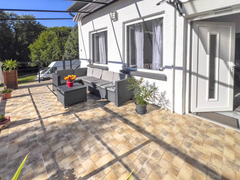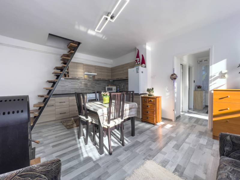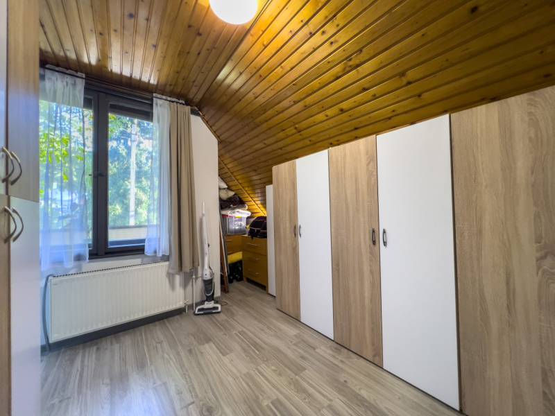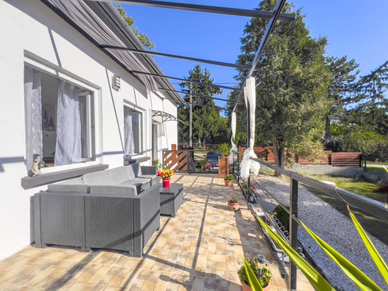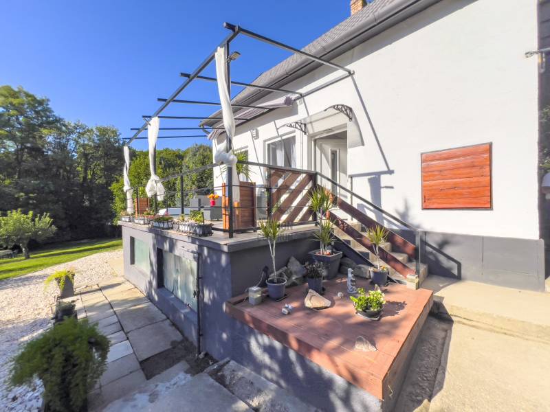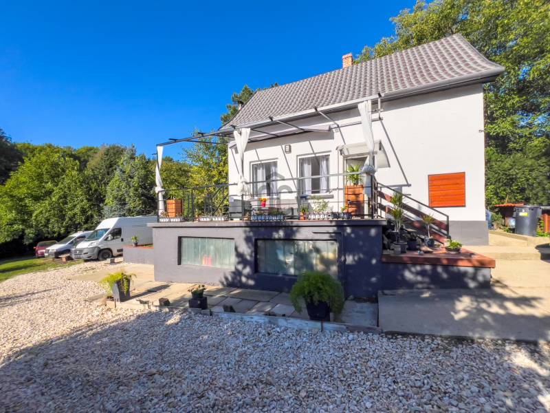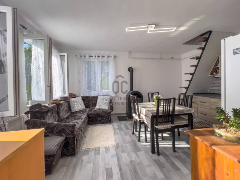 Az ingatlan hitelezhető.A zártkerti 803 nm-es telken 2000-ben épült 70 nm-es ház téglából.A telek végében ősfás erdő, kertben gyümölcsfák vannak.Ház alatt garázs ás tároló található..A házban található:Földszint: