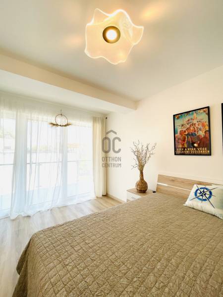 Balatonföldvár a déli part egyik legismertebb nyaralóhelye. Már a XIX. század végén is szívesen választották a hazai arisztokrácia tagjai nyári rezidenciájuk felépítésére a Széchenyi család birtokából felparcellázott telkeket. A település máig megőrizte a boldog békeidők bájos hangulatát, de számos fejlesztés valósul meg folyamatosan, az itt lakók és az ide látogató turisták kényelméért. Sok kilométernyi út, kerékpár út, járda, közterek, játszóterek újultak meg, és folyamatosan szépülnek a strandok is. Változatos kínálatú vendéglátóhelyekben kiváló ételeket lehet fogyasztani. A közelben számos szabadidős program érhető el. A teljesség igénye nélkül a legkedveltebb program helyszínek Kőröshegyi Levendulás, vagy Teknős park, Kerekiben található Balatoni Madárkert díszmadár és kisállat park sok élményt és feltöltődést tud nyújtani a pihenni vágyóknak.2021-ben átadott lakást kínálok figyelmébe Balatonföldvár központjában. Valóságban is a központban van sétatávolságra a Balatontól, strandtól, kikötőtől. A társasház és a lakás is luxus minőségben készült el. A társasház lifttel szerelt, a lakások egész évben használható lakóingatlanok, sok tulajdonos állandó lakos.A nyári hónapokban, szelesebb időben a társasház kültéri medencéje nyújthat kikapcsolódást. Rosszabb időjárás esetén, vagy csak kikapcsolódásként a lakók finn és infra szaunával, gőzkabinnal, és jakuzzival felszerelt wellness részleget tudnak használni.A lakás remek elosztású, 3. emeleti nappali, 2 háló szobás 98,4 m2-es lakótérrel + 36 m2-es terasszal rendelkezik. A komfortérzetet a lakásban „H” tarifás hőszivattyús mennyezet és padló fűtéssel, a nyári időszakban mennyezet hűtéssel lehet szabályozni. Tágas terek, nagy ablak felületek, motoros redőnyök. A hűtés-fűtés, motoros redőnyök smart-home rendszerben távolról vezényelhetőek.A vételár teljes bútorzattal együtt értendő, a lakáshoz tartozó tárolóval és felszíni nyitott parkolóval. Jelenleg egy Cég irodaként bérli, nem lakásként használja. A bérlőnek 1 hónapos felmondási ideje van. A bérlő az ingatlant szívesen tovább bérli az új tulajdonsotól.Finanszírozásban online ügyintézéssel rendelkezésére állunk!Bank független díjmentes ügyintézésünk során minden bank és hitelintézet kínálatát összehasonlítjuk, hogy önnek a legmegfelelőbb konstrukciót tudja kiválasztani, rövid utánjárással.Az ingatlan kitűnő választás bármilyen korosztály részére, egy-két gyermekes családoknak, unokás nagycsaládoknak, home office-ban dolgozóknak és kiadásra keresőknek is.