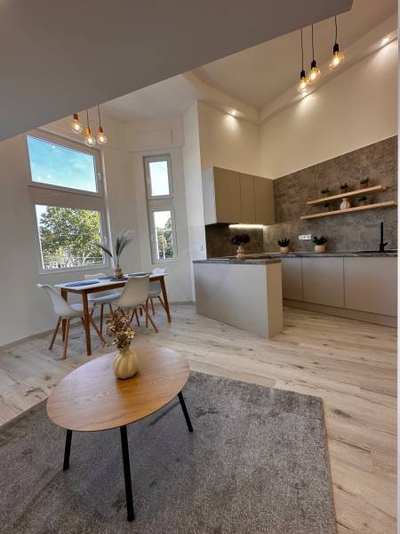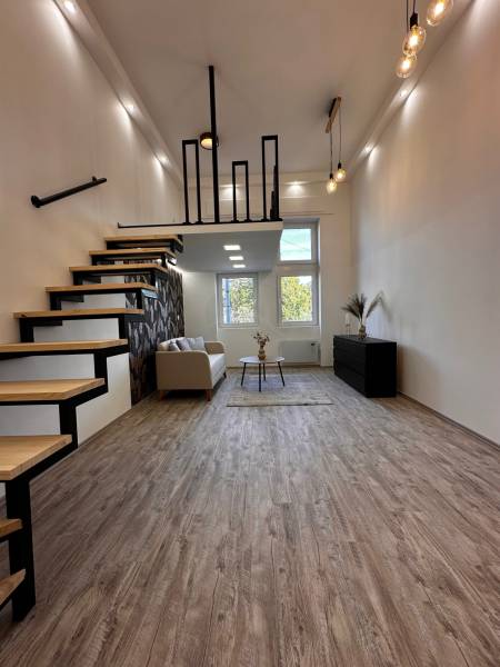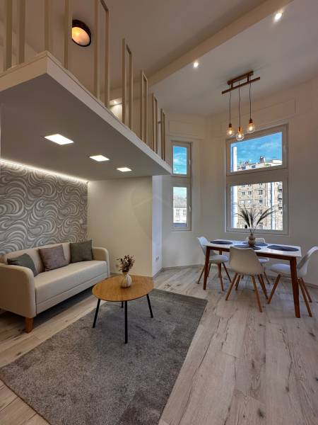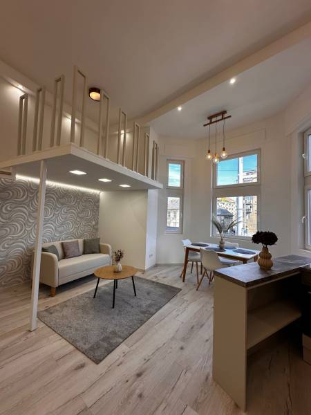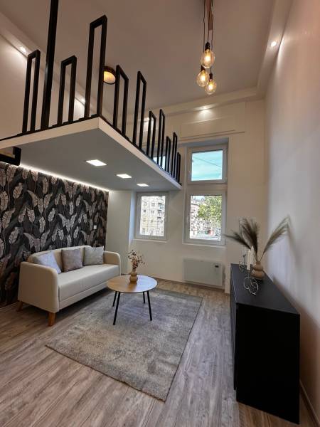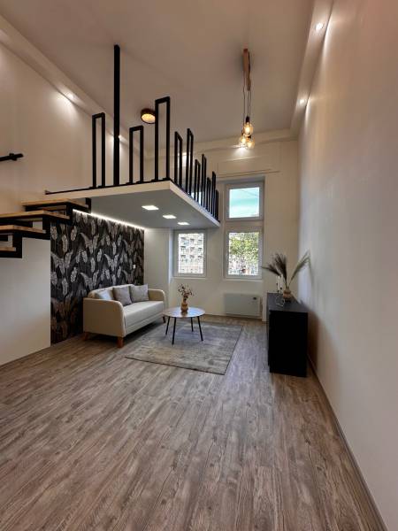 Megvételre kínálunk egy 35 nm-es, galériás lakást a IX. kerület Mester utcában. A lakáshoz tartozik egy 5 nm-es galéria, amely ideális hálórésznek vagy dolgozósaroknak. A lakás teljesen különálló bejárattal rendelkezik, így maximális privát szférát biztosít lakói számára.- Az ingatlan ügyvédi használati megosztással vásárolható meg.-A 3,8 méteres belmagasság tágas érzetet ad, a körbe ablakos kialakításnak köszönhetően pedig világos, barátságos tér várja új tulajdonosát.A lakás tehermentes, így rugalmasan birtokba vehető.Műszaki és egyéb jellemzők:- Közös költség: 18.800 Ft, mely a felújítási alapot is tartalmazza.- Világos, száraz lakás, a konyhában és a fürdőben is van ablak.- Modern, beépített konyhabútor, komplett berendezés (kanapé, étkezőasztal, franciaágy).- Teljes gépesítés: Ariston Wellis Evo bojler, hűtő-fűtő klíma, norvég panel.- Egyedi elektromos mérőóra rendszer: a 2. számú lakás rendelkezik fő villanyórával, a többiben digitális almérők vannak, de a vezetékelés lehetővé teszi a főmérőre való egyszerű átkapcsolást.Közös képviselet és ház állapota:- A társasház részben már felújított, kívülről újszerű állapotú.- Lift és belső kert szolgálja a lakók kényelmét.- Rendes, segítőkész lakóközösség.- A pince, a közös villany-, víz-, gáz-hálózat, valamint a kuka tároló is felújításra került.- A környék rehabilitáció alatt áll, ami hosszú távon pozitív értéknövekedést jelent.