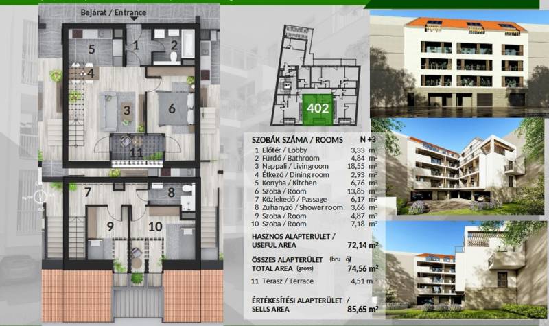 Az új lakásod keresése izgalmas kaland, és most egy olyan lehetőséget kínálunk, amely tökéletesen megfelel az első lakásvásárlók igényeinek. Budapest 04. kerületében, a felkapott Újpest központban található , új építésű lakóingatlan, amely minden elképzelésedet felülmúlja. Az ingatlan alapterülete 84nm, amely négy tágas szobát rejt,a belső 2 szinten elosztva, így bőséges teret biztosít a mindennapi élethez. Az alsó, és felső szinten is található fürdőszoba egyedi tervezésű, és a világos amerikai konyhás nappali tökéletes helyszín a családi összejövetelekhez vagy baráti találkozókhoz.Az ingatlanhoz tartozik egy 5 nm-es erkély, ahol élvezheted a friss levegőt és a csendes környék nyugalmát. A lakás prémium kivitelezésű, és a legmodernebb technológiával készült, beleértve a motoros redőnyöket és az elektromos autó töltési lehetőséget, ami különösen vonzó a környezettudatos vásárlóknak. A házközponti fűtés egyedi mérésének köszönhetően pedig mindig a legjobb komfortérzetet élvezheted.A környék ellátottsága kiváló, hiszen a közelben található boltok, éttermek és szolgáltatások mind hozzájárulnak a kényelmes mindennapokhoz.Ne habozz, bizalommal állunk rendelkezésedre, hogy segítsünk megtalálni álmaid otthonát!