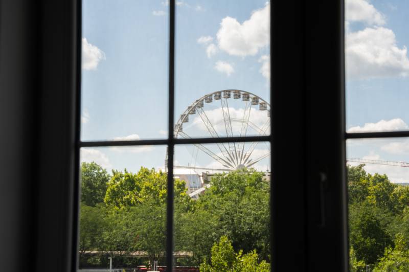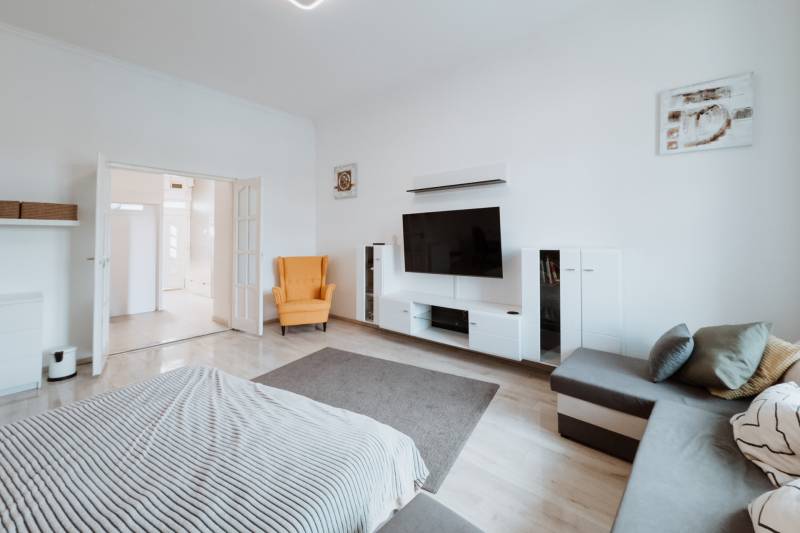 Az Erzsébet tér látványa nem csak díszlet – ez az otthon része. A hatalmas ablakokon át beszűrődő fény, a város mozgása és ritmusa minden pillanatban jelen van, mégis tökéletes egyensúlyban áll a belső tér letisztult nyugalmával.Az enteriőr elegáns, mégis élhető: modern vonalvezetés, finoman megválasztott anyagok, arányos terek. A belső udvarra néző, privát terasz egy másik világ – csendes, intimebb, és éppoly figyelemre méltó, mint a kilátás maga.Ez a lakás nemcsak egy hely a város szívében, hanem egy tudatosan felépített életstílus. Egyensúly város és otthon, látvány és nyugalom között. Egy élmény – nap mint nap.