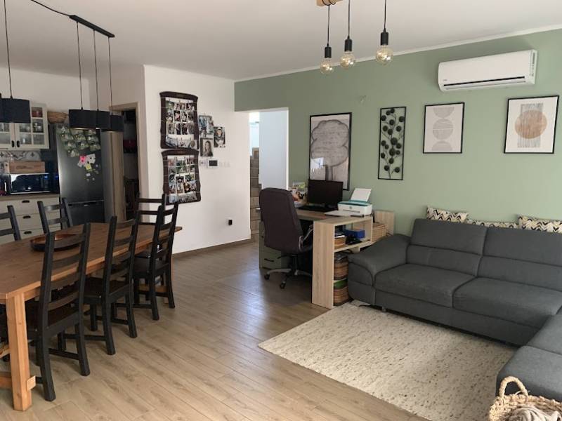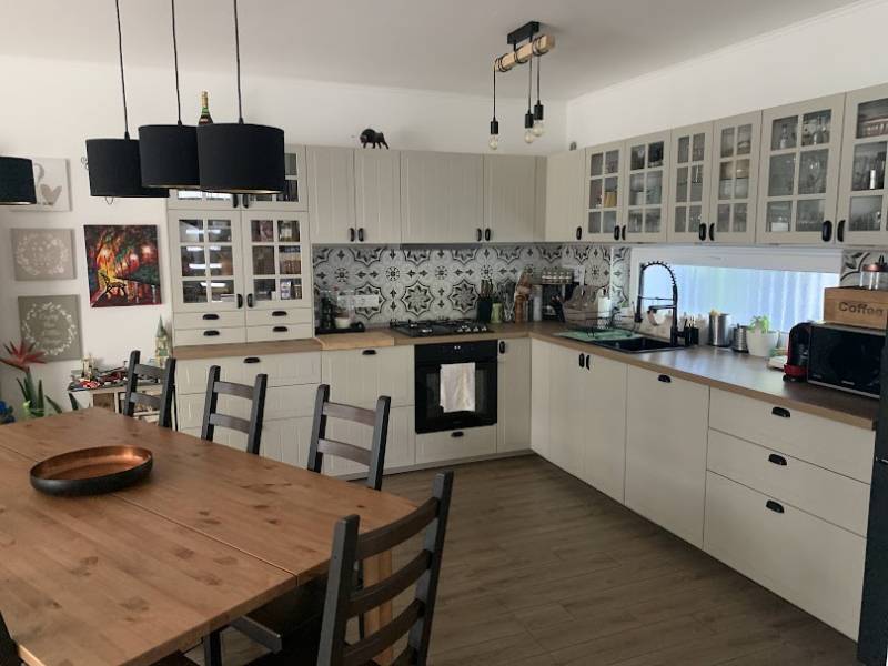 Eladásra kínálunk egy 2021-ben épült, újszerű állapotban lévő, igényes, otthonos családi fészket, Dabas egyik legkedveltebb részén. A városban pár perces sétára könnyen elérhetőek óvodák, iskolák, egészségügyi intézmények és különböző élelmiszerboltok (Tesco, Lidl, Penny, Aldi).Főbb jellemzők:119 m²-es lakótér: 4 hálószoba, amerikai konyhás nappali, beépített és gépesített konyhával, galéria, kamra.Fürdőszobák: 2 fürdőszoba, lent zuhanyzóval, emeleten fürdőkáddal és zuhanyzóval, 3 wcEnergiaosztály: A++.Fűtés: Háromféle (gázkazán, hőcserélős indirekt tároló, 5 hűtő-fűtő klíma).Napelemek: 10 db (4 kW), + 8 kW-os inverterrel, így még bővíthető isKültéri extrák:Két terasz (16,43 m² és 4,4 m²) a pihenéshez.Parkosított kert grillező résszel.15 m²-es mobil műhely tárolóval (az ár tartalmazza).Műszaki adatok:60 cm beton sávalap, 30 cm vastag LEIER teherhordó falak.20 cm hőszigetelés, hőszigetelt, háromrétegű üvegezésű nyílászárók redőnnyel és szúnyoghálóval.