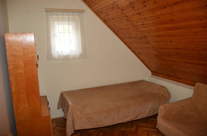 Eladó lakóházzá alakítható hétvégi ház Szentendre egyik legcsendesebb, zöldövezeti részén — Tyúkosdűlő, Bég utcában. Szentendre Tyúkosdűlő részén, a Bég utcában, aszfaltos utcában, csendes, madárcsicsergős, természetközeli környezetben eladó egy lakóházzá alakítható hétvégi ház.Az ingatlan egy 547 m²-es, gondozott, fűvel borított telken helyezkedik el, összközműves (víz, villany, gáz elérhető), kivéve a csatornarendszert, amely az utcában nem kiépített.Főbb jellemzők:Hasznos alapterület: 116 m²Telek területe: 547 m²Építés éve: 1980-as évekSzerkezet: tégla, B30Tető: palafedésAlap: solymosi kő, betonba rakvaFűtés: földszinten szobánként gázkonvektor, emeleten a gázrendszer kiépített, konvektorok elhelyezhetőkKémény: kandalló bekötésére alkalmasA ház alapbútorzattal eladó.Nyílászárók: fa ablakok, lemez bejárati ajtó, bent tömörfa ajtókVillany: 3 fázis, részben felújítandóKülső felület: kőporos dörzsölésHelyiségek elosztásaAlagsor: garázs + tárolóFöldszint: konyha, étkező, nappali, 2 szoba, fürdő, WC, lépcsőfeljárat(Az egyik szoba akár a fürdő bővítésére is felhasználható.)Emelet: 1 nagy és 2 kisebb szoba lambériázott mennyezettel, az egyik szobából fürdő kialakítható.Padlás: betonfödémTető: pala Kert és környezet:Az udvar rendezett, árnyas, karbantartott, többféle gyümölcsfával beültetett, és a gyönyörű panoráma még különlegesebbé teszi.A zöldövezeti telek ideális választás azoknak, akik nyugodt, természetközeli környezetben keresnek otthont vagy pihenőhelyet — Szentendre legszebb domboldalán, festői kilátással.Közlekedés és elhelyezkedés:A ház aszfaltos úton közelíthető meg és a bekötő utca is aszfaltos.Buszmegálló: kb. 10 perc gyalogAutóval: 8 perc a HÉV- és buszpályaudvar, 25–30 perc BudapestDuna-part, Papsziget: 10 perc sétával elérhetőÉlelmiszerbolt, kertvárosi szolgáltatások: kb. 10 perc gyalogInfrastruktúra és szolgáltatásokA közelben minden fontos intézmény megtalálható:Háziorvosi és gyermekorvosi rendelők, valamint fogászat a városközpontbanGyógyszertárak és kisebb egészségügyi szolgáltatók (pl. ENDRE-MED gyógyászati segédeszköz bolt)Bevásárlási lehetőségek, helyi boltok és élelmiszerüzletek sétatávolságbanA városi egészségügyi infrastruktúra folyamatosan fejlesztés alatt áll, több rendelő megújításra kerülGyors közlekedési kapcsolat Budapest irányába a 11-es főúton és a HÉV-en keresztülÖsszegzés:Ez az ingatlan ideális választás mindazok számára, akik:csendes, természetközeli környezetben szeretnének élni,értékelik a jó megközelíthetőséget és a teljes infrastruktúrát,vagy egy lakóházzá alakítható, stabil szerkezetű házban látnak fantáziát.Ne hagyd ki ezt a lehetőséget!Érdeklődj még ma, és győződj meg személyesen is az ingatlan nyújtotta lehetőségekről Szentendre festői Tyúkosdűlő részén!