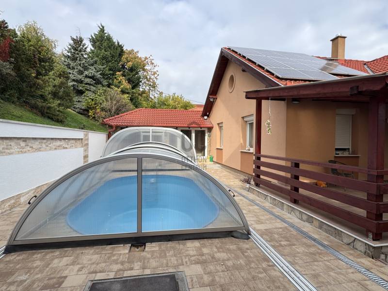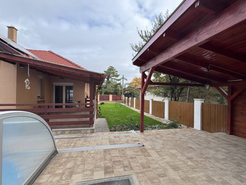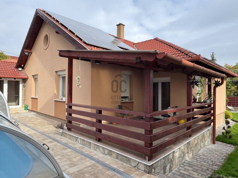 Érd Parkváros – Földszintes, újszerű családi ház medencével és napkollektorral!Érd csendes, zöldövezeti részén eladó egy igényesen karbantartott, nappali + 4 szobás, földszintes családi ház, 595 m²-es parkosított telken ,medencével, napkollektorral és számos extrával!Az 144 m²-es (nettó 119,86 m² + terasz) ingatlan 2011-ben épült, és azóta folyamatosan modernizálták – újszerű állapotban van.Főbb jellemzők:-nappali + 4 hálószoba-2 autó számára fedett beálló-padlófűtés + radiátorok, kondenzációs gázcirkó, 15 kW-os napkollektor-klíma, vízlágyító, beépített szÉF-fúrt kút, öntözőrendszer, kültéri medence, fedett grillező-új beltéri és kültéri ajtók, új utcafronti kerítés folyamatbanElhelyezkedés:Családi házas, nyugodt környezet, kiváló infrastruktúrávalIskola, óvoda, gyógyszertár, bevásárlási lehetőség pár perc távolságra.M7, M0 autópályák 5 perc, M6 10 perc alatt elérhető.Ez a ház ideális választás azoknak, akik modern, egyszintes otthont keresnek minőségi műszaki megoldásokkal és gondozott környezettel, Érd egyik legjobb részén.