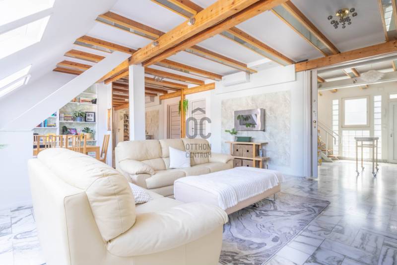 A Duna budai partján, a XI. kerület nívós részén, Gellért hegyen a Kemenes utcában keresi új tulajdonosát, egy különleges, 4. emeleti, két külön lakrészre osztott, műszakilag és esztétikailag is jó állapotú, panorámás ingatlan! Ha jó adottságokkal rendelkező, értékálló ingatlant keres kiváló környéken, ezt a lakást feltétlenül nézze meg!Fontos infók a LAKÁSRÓL:- A lenyűgöző Gellért hőforrás és a nemzeti park mellett elhelyezkedő, romantikus, panorámás ingatlan.- 4. emeleti, belső két szintes, körbe napozott, mesés panorámával a Citadellára és Gellért-hegyre.- Tetőtérben helyezkedik el, teljes alapterülete 267 m2, tulajdoni lapon 158 m2-es lakás két lakrészre osztva.- A két szeparált lakrész közös előszobából nyílik és két nagy, belső két szintes lakásként funkcionál.- 1-es lakás elosztása: konyha, nappali+étkező, fürdőszoba mellékhelyiséggel, emeleten két hálószoba, fürdőszoba és mellékhelyiség.- 2-es lakás elosztása: előszoba, konyha+étkező, tároló, fürdőszoba mellékhelyiséggel, közlekedő, nappali, hálószoba+tároló, emeleten két szoba, fürdőszoba és mellékhelyiség.- A lakások fűtését két külön gáz cirkó kazán, a hő leadást radiátorok biztosítják.- Minden közmű fogyasztás alapján fizetendő, a két lakás külön almérőkkel rendelkezik.- Közös költség: 37.000 Ft, mely tartalmazza a felújítási alapot is.- A belmagasság 280 cm, minden helyisége tágas terekkel rendelkezik.- Nyílászárói műanyag és fa, ablakai árnyékolóval felszereltek.- Az ingatlan rendelkezik energetikai tanúsítvánnyal és villamosság biztonsági felülvizsgálattal is.- Az ingatlan hosszú távra könnyen bérbe adható, és jó megtérülést kínál.Amit a HÁZRÓL érdemes tudni:- 1905-ban épült, 4 emeletes, 45 lakásos, szecessziós stílusban épült tégla társasház.- Külső és belső homlokzata egyaránt jó állapotú, lifttel felszerelt.- Lépcsőháza tiszta és gondozott, lakóközössége rendszerető.KÖRNYÉK és közlekedés:- XI. kerület, Gellérthegy, Kemenes utca.- Karnyújtásnyira a Szent Gellért Gyógyfürdő, Műegyetem, Gellért-hegy, Citadella, Budai Rakpart.- A terület infrastruktúrája és tömegközlekedése kiváló.- Pár perc sétatávolságban elérhető számos tömegközlekedési eszköz.- Élelmiszer boltok, az Allee Bevásárló Központ, a Fehérvári úti Vásárcsarnok sétatávolságban.- A belváros gyorsan és kényelmesen megközelíthető autóval és tömegközlekedéssel egyaránt.AZ INGATLAN MEGTEKINTHETŐ:- 3D Websétán keresztül,- személyesen,- online személyes bejelentkezéssel.FINANSZÍROZÁSBAN ONLINE ÜGYINTÉZÉSSEL IS SEGÍTÜNK:- Bank-független hitelcenterünk díjmentesen versenyezteti minden bank és hitelintézet ajánlatát.- Nincs más dolga, mint beszélgetni munkatársunkkal, majd a megversenyeztetett ajánlatokból kiválasztani a hosszútávon is a legmegfelelőbb konstrukciót.- Szakértőink 20 éves szakmai tapasztalattal és egyedi igényekre szabott, fogyasztóbarát lakáshitelekkel, babaváró hitellel, teljes körű CSOK PLUSZ ügyintézéssel várják.Az ingatlan előre egyeztetett időpontban megtekinthető, kérdés esetén hívjon bizalommal!
