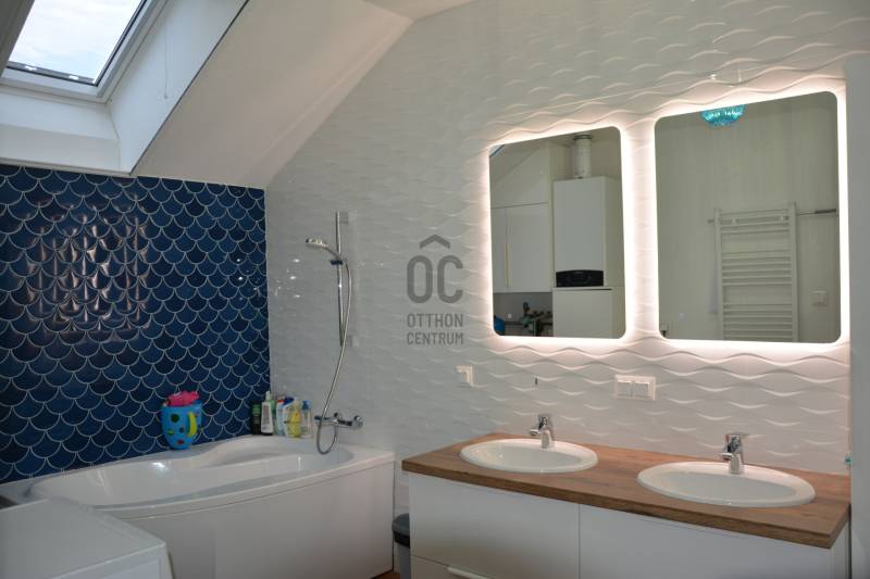 Eladó modern sorház Pécelen – panorámás kilátás, kert, alacsony rezsi!Pécel egyik legkedveltebb részén, a Maglódi úti buszvégállomáshoz közel eladó egy 2019-ben épült, kiváló állapotú nappali + 4 szobás sorház, mely modern technológiát, kényelmet és természetközeli életet kínál egyben.Az ingatlan korszerű (CC) energetikai besorolású, ezért fenntartása rendkívül gazdaságos.A ház világos, tágas terekkel rendelkezik, a panorámás teraszról és az ápolt kertből pedig gyönyörű kilátás nyílik a környékre. Az utca végén játszótér és kiserdő biztosítja a nyugodt, családbarát környezetet.Főbb adatok és jellemzők:106 m² lakóterületNappali + 4 szobaFöldszinten: zuhanyzós fürdő WC-velEmeleten: fürdő + külön WC15 m²-es földszinti és emeleti terasz30 cm tégla + 15 cm hőszigetelés3 rétegű üvegezés, elektromos alumínium redőnyök, szúnyoghálóKondenzációs gázkazán, 200 l-es tároló, hűtő-fűtő klímaKandalló-beépítéshez bélelt kéményRiasztó- és kamerarendszer előkészítésPakolható padlástérKert és külső terület:285 m²-es saját gondozott kert2 autó számára kialakított beállóAutomata öntözőrendszerTermő gyümölcsfák, bokrok, Durisol magaságyás2 fatároló, gyerekjátszóMiért érdemes megnézni?Kiváló elhelyezkedés: minden elérhető pár perc alattModern, energiahatékony épületNyugodt, zöldövezeti környezetIdeális választás családoknak3%-os hitel igénybevehető