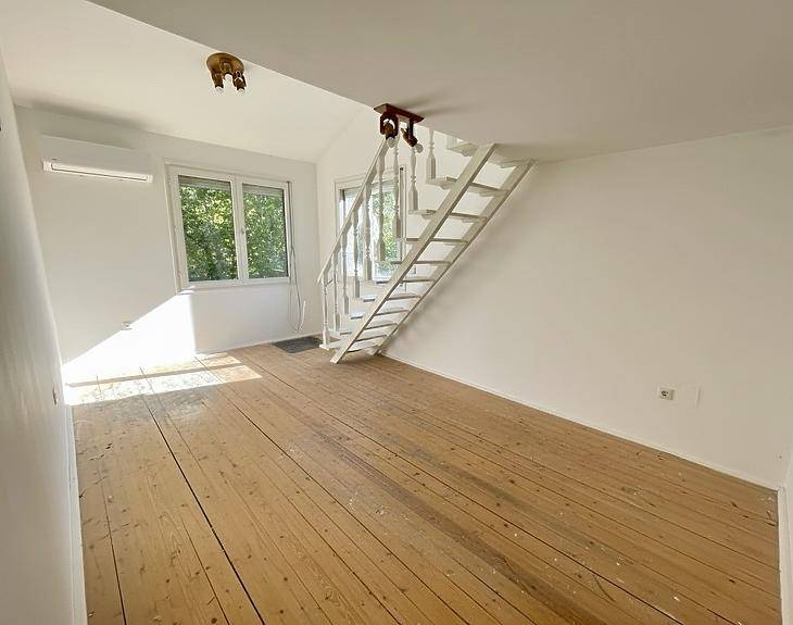 Vácon, a közkedvelt Deákvár városrészben eladó egy második emeleti, erkélyes lakás, amely egy zárt udvarban található, ahol játszótér is kialakításra került, így családosok számára is ideális választás lehet. Az ingatlan elosztása praktikus és egyedi: konyha, közlekedő, nappali, fürdőszoba, gardrób, két galéria és egy erkély található benne. A lakás tetőtéri kialakításának köszönhetően a belmagasság változatos. A nyílászárók dupla üvegezésű, fatokos ablakok, a fűtést és a hűtést pedig két modern hűtő-fűtő klíma biztosítja. A lakás északkeleti fekvésű, ami kellemes, világos reggeleket garantál. A villamoshálózat, a vízvezeték és a csatornarendszer teljeskörű felújításon esett át, a lakás többi részének felújítása pedig elkezdődött, de annak befejezése már az új tulajdonosra vár – így lehetőség nyílik arra, hogy saját ízlés szerint kerüljön kialakításra az otthon. A környék infrastruktúrája kiváló: a közelben bolt, óvoda, iskola és buszmegálló is található, így minden fontos intézmény könnyen elérhető.Kérdésével, illetve megtekintése szándékával keressen bizalommal, amennyiben hitelre lenne szüksége, profi hitelközvetítő kollégáink díjmentesen állnak rendelkezésükre.Amennyiben eladásra lenne szüksége új ingatlanjának megvásárlásához, irodánk ingyenes értékbecslést vállal egész Vác területén.