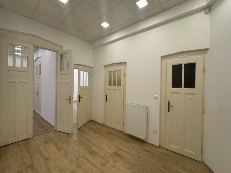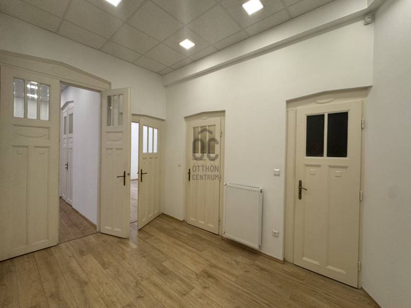Budapest szívében, a VI. kerület egyik legkedveltebb utcájában eladó ez a 81 m²-es, erkélyes, napfényes lakás, egy liftes, patinás társasház első emeletén (magasföldszint felett – gyakorlatilag a második szint magasságában).Az ingatlan tágas tereivel és klasszikus arányaival azonnal megidézi a régi pesti nagypolgári életérzést – hatalmas belmagasság, impozáns szobák, eredeti, felújított beltéri ajtók és hangulatos részletek.Korábban ügyvédi irodaként működött, így állapota kimagaslóan rendezett, karbantartott, mégis könnyedén átalakítható saját ízlés szerint.Főbb jellemzők:•81 m², erkélyes, napfényes lakás•2 tágas szoba (35 m² és 15 m²), mindkettő világos és csendes•Felújított konyha•Külön WC és fürdőszoba•Külön, kb. 1,5 m²-es spejz/tároló helyiség•Kis, kb. 2,5 m²-es erkély a Jókai utcára•Riasztó, minden ablakon biztonsági zár•Eredeti, felújított belső ajtók, amelyek megőrzik a lakás karakterétA társasház:•Liftes, 5 emeletes, 1910 körül épült•2017-ben a lakásban teljes körű gépészeti és elektromos felújítás történt (vezetékek, fűtésrendszer cseréje)•A ház közös tereinek felújítása rövid távon tervben van Lehetőségek:A 35 m²-es nappali mérete miatt könnyedén két külön szobává is alakítható, a konyha és az előtér falának megnyitásával pedig amerikai konyhás nappali is kialakítható.Akár otthonnak, akár irodának tökéletes választás — a klasszikus belvárosi elegancia és a modern komfort ideális egyensúlya.Finanszírozás:Az ingatlan OtthonStart hitellel is megvásárolható – akár azonnal költözhető állapotban!