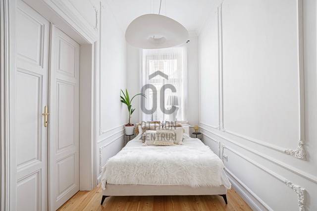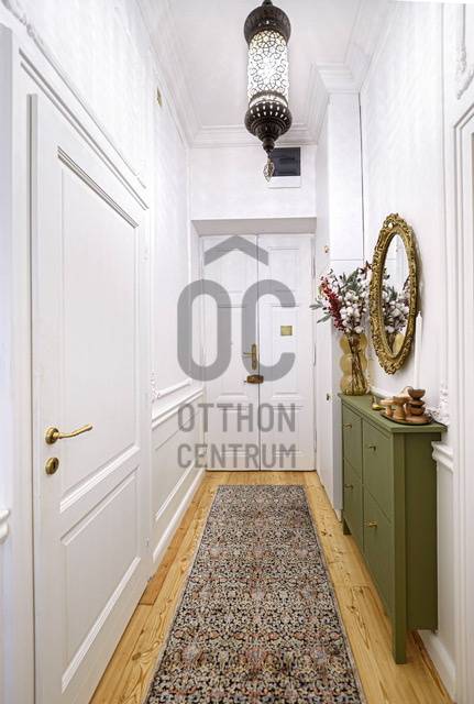 ELADÓ UTCAI NÉZETŰ, ERKÉLYES, 2 HÁLÓSZOBÁS NAGYPOLGÁRI LAKÁS AZ V. KERÜLET EGYIK LEGKIEMELTEBB RÉSZÉN!A LAKÁSBAN A KLASSZIKUS ÉS BOHÉM RÉSZLETEK SIMULNAK ÖSSZE ELEGÁNS EKLEKTIKÁBAN ÚJRAÉRTELMEZVE EZZEL A NAGYPOLGÁRI STÍLUST.A lakás Budapest történelmi belvárosának egyik legszebb macskaköves utcájában található, egy 130 éves műemlékvédelem alatt álló ház második emeletén.A lakás teljes körű felújításon esett át, lakberendező által tervezett exkluzív belsőépítészeti megoldásokkal és berendezéssel. A felújítás során teljes műszaki és esztétikai csere történt a legmagasabb minőségben az alapoktól.-Teljes elektromos hálózat csere-Korszerű gáz cirkó fűtés, és új radiátorok kiépítése (Viessmann kazán)-Hűtő/fűtő klíma kialakítása-Teljes vízvezeték csere és új fürdőszobák kialakításaA nyílászárók az épület eredeti borovi fenyő ablakai, melyek az eredeti állapotában restaurálásra kerültek és kétrétegű hővédő üvegezéssel lettek ellátva. A falak az épület és a lakás korszellemének megfelelően elegáns díszítést kaptak, valamint az előszobában és a konyhában angol fal fa burkolat lett kialakítva.A konyhabútor egyedileg gyártatott, AEG illetve Electrolux konyhagépekkel felszerelt, valódi kő konyhapulttal, gránit mosogató medencével. A konyhában beépített víztisztító adagolja a konyhai csaptelepen keresztül az ivóvizet.Két külön fürdőszoba került kialakításra, a kisebb közvetlen hálószoba kapcsolattal rendelkezik. A nagyobbik fürdőszoba az otthoni wellness szerepét tölti be, tágas méretei, a szabadon álló fürdőkád, és az egyedi épített zuhanyzó a relaxációnak ad teret. Itt található egy külön háztartási helyiség is, ahol helyt kapott a mosógép és egy plusz bojler gondoskodik a kifogyhatatlan meleg víz ellátásról.A kisebbik hálószoba az utcára néz, mégis csendes a második emeleti elhelyezkedésének köszönhetően. Az egyik falán padlótól mennyezetig egy hatalmas gardrób szekrény került beépítésre.A nagyobbik hálószoba udvari nézetű, és jól szeparált, saját fürdővel, akár egy kis önálló apartman az ingatlanban.A lakás alapterülete: 103 m2 + az erkély mérete.A közös költség: 42.000 Ft, mely tartalmazza a vízfogyasztást.A lakás közvetlen közelében az Egyetem tér, a Váci utca, a Vásárcsarnok, és a Duna-part.Számtalan étterem, kávézó, és bár, valamint bevásárlási lehetőség található karnyújtásnyira az ajtón kilépve.A parkolás helyi lakos kártyával ingyenesen a közterületen biztosított, vagy lehetőség van mélygarázs bérlésére a környéken.További információért és megtekintés miatt keressen bizalommal a hét bármely napján!