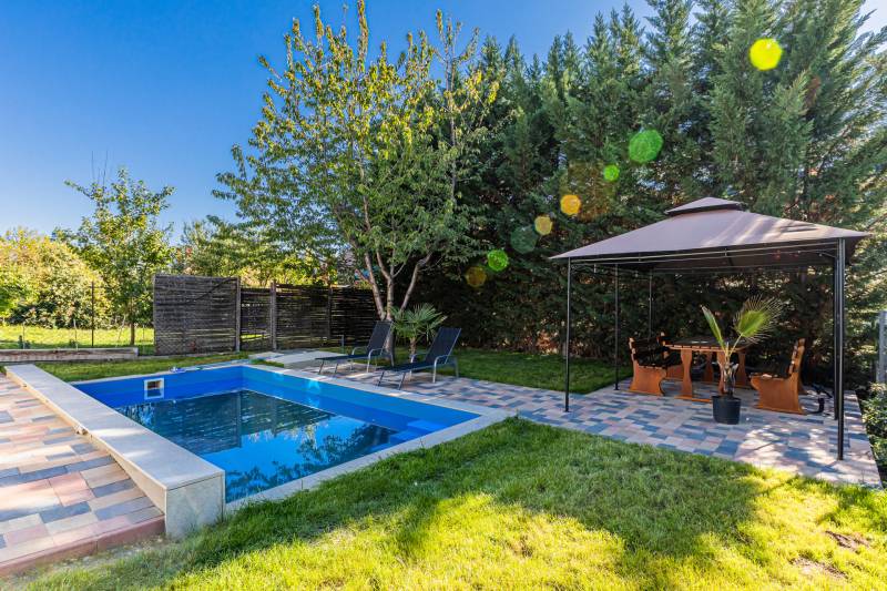 Balatonalmádi csendes, de felkapott környékén kínálunk eladásra egy igazán exkluzív, kiváló állapotú házat, amely ideális választás lehet azon ügyfeleink számára, akik magán- vagy befektetési céllal keresnek ingatlant.Ez a modern, 90 nm alapterületű ingatlan 323 nm-es telken helyezkedik el, és minden kényelmet biztosít, amire csak szüksége lehet. AMIT A HÁZRÓL TUDNI KELL : 2025 - ben teljeskörű gépészeti felújításon esett át ! Víz , villany vezetékek cseréje megtörtént ! A házban prémium minőségű anyagokkal történt a burkolatok felújítása.A konyhában új beépített bútorok mellett első osztályú tűzhely , mosogatógép lett beépítve.A tető új korcolt cserepes lemez borítást kapott.- Szintenként : 45 m2 hasznos alapterületű.- Földszint : nappali , konyha , étkező , fürdőszoba , terasz- Emelet: nappali , 2 db hálószoba , fürdőszoba , erkély- Hűtés - fűtés : klímákkal megoldott - A homlokzaton biztonsági kamera lett elhelyezveAz amerikai konyha és a tágas nappali egy légtérben helyezkedik el, ami ideális a közös családi programokhoz. A 30 nm-es teraszról és az 8 nm-es erkélyről csodálatos tóra néző kilátásban gyönyörködhet, ami a pihenés és a kikapcsolódás tökéletes helyszínévé varázsolja ezt az ingatlant. A ház prémium kivitelezésű, biztonsági ajtóval és riasztórendszerrel ellátott, így Ön és családja biztonságban érezheti magát. A rendezett kert és a medencés ház környezete ideális a szabadidő eltöltésére, legyen szó baráti összejövetelekről vagy családi programokról. Az ingatlan előtt zárt udvarban 2db autó beállására van lehetőség.A környék adottságai is figyelemre méltóak: Balatonalmádi közlekedése kiváló, a város tömegközlekedési lehetőségei könnyen elérhetők, így az ingatlan kiválóan megközelíthető.A csendes utcák és a barátságos szomszédok biztosítják a nyugodt életkörülményeket, míg a közelben található üzletek, éttermek és szabadidős lehetőségek mind hozzájárulnak a kellemes mindennapokhoz. A Balatonpart és a strand kényelmes sétával 10 perc alatt elérhető.Ez a tehermentes ingatlan ideális választás lehet mindazok számára, akik egy modern, világos és kényelmes otthont keresnek Balatonalmádiban. Ha bármilyen kérdése van, kérem, ne habozzon kapcsolatba lépni velem, szívesen állok rendelkezésére a részletek tisztázásában és az ingatlan megtekintésének megszervezésében. Hétvégén is dolgozom , zavarjanak bátran ! Az Ön új nyaralója csak egy telefonhívásnyira van!