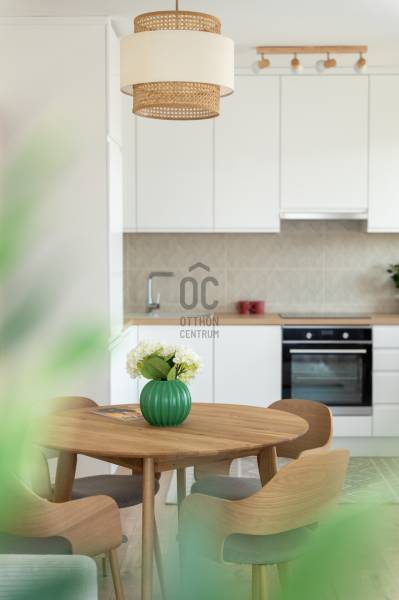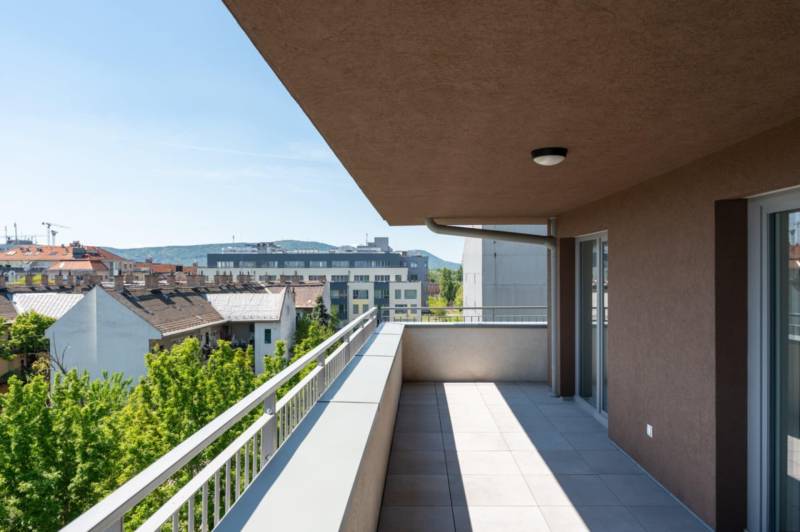 !! IGAZI RITKASÁG, KIVÉTELES LEHETŐSÉG !!!A XIII. kerület családias részén, a New Palace lakóparkban várja első lakóját ez a nagy teraszos, TELJESEN BERENDEZETT otthon.Az épület nemrég került átadásra, ennek megfelelően a mai igényeknek, elvárásoknak eleget tesz: többek között a mennyezeti hűtés-fűtés, gyönyörű füvezett közös kert, praktikus alaprajz teszik szerethetővé és igazán élhetővé.A lakás 4. emeleti saroklakás, 65 nm, 27 nm-es L alakú terasszal, nappalival, 2 hálóval, gardróbbal.Tájolásának köszönhetően valahol mindig élvezhetjük a Nap sugaraitA lakáshoz tartozik egy nagy méretű parkoló és tároló, melyek megvásárlása kötelező.