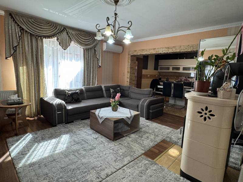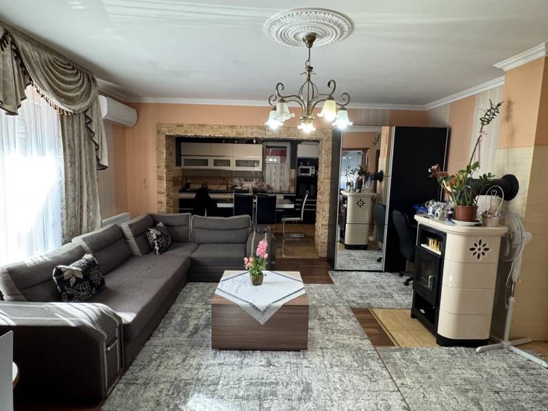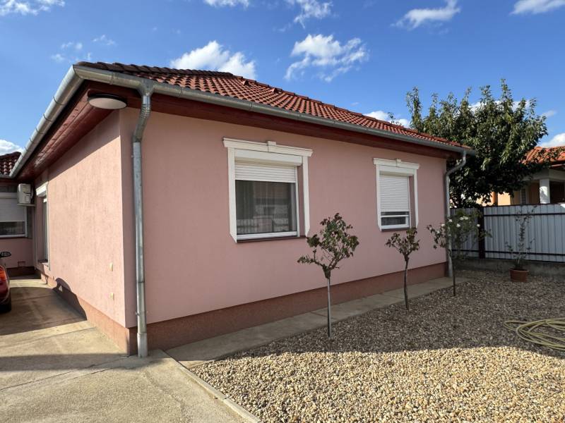 Eladó családi ház Nyíregyháza–Újkistelekiszőlő, csendes, keresett környéken!2014-ben épült, nettó 92,91 m² alapterületű, tégla építésű családi ház várja új tulajdonosát egy 740 m²-es, gondozott telken.A ház két szobával, tágas nappalival, két konyhával melyből egy a 25 m²-es fedett, zárt teraszon helyezkedik el ,fürdőszobával ,mosókonyhával külön wc-vel ,kamrával és kazánházzal rendelkezik.– kiváló választás akár többgenerációs család számára is.A fűtés vegyes tüzelésű, így gazdaságosan üzemeltethető.Klímával megoldott a hűtés.A környék rendkívül csendes, biztonságos és keresett, a belváros autóval néhány perc alatt elérhető.A szépen parkosított kertben garázs és fedett gépkocsi-beálló is helyet kapott. Ideális otthon mindazoknak, akik nyugalomra, tágas térre és jó elhelyezkedésre vágynak.A hirdetésben szereplő információk a megbízótól kapott adatok alapján készültek, pontosságukért felelősséget nem vállalunk! Az alaprajz csak tájékoztató jellegű!Amennyiben vásárláshoz hitelre is szüksége van, független hitel tanácsadónk ingyenesen tud Önnek segítséget nyújtani a legjobb konstrukciók kiválasztásában és a folyamat lebonyolításában. Irodánk kereső ügyfeleinknek teljes körű szolgáltatást nyújt, szakszerű tanácsadással, energetikai tanúsítvány elkészítésével, hitelügyintézéssel és profi ügyvédi segítséggel. Abban az esetben ha az ingatlan felkeltette érdeklődését keressen bizalommal!